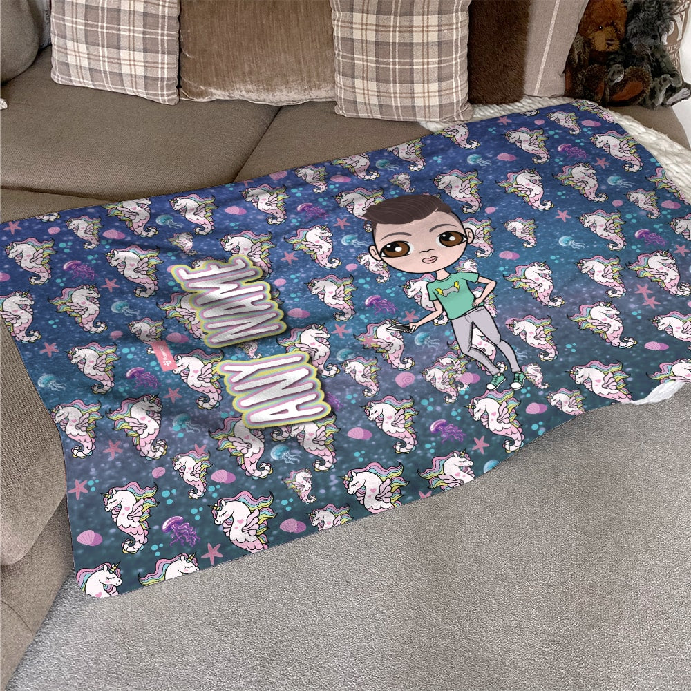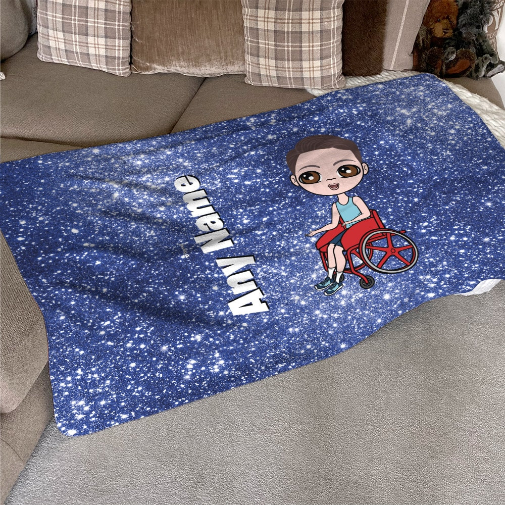 Jnr Boys Wheelchair Portrait Blue Glitter Effect Fleece Blanket