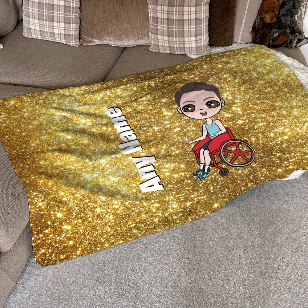 Jnr Boys Wheelchair Portrait Gold Glitter Effect Fleece Blanket