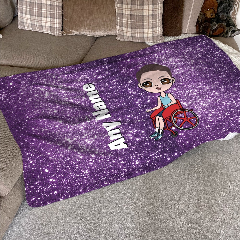 Jnr Boys Wheelchair Portrait Purple Glitter Effect Fleece Blanket