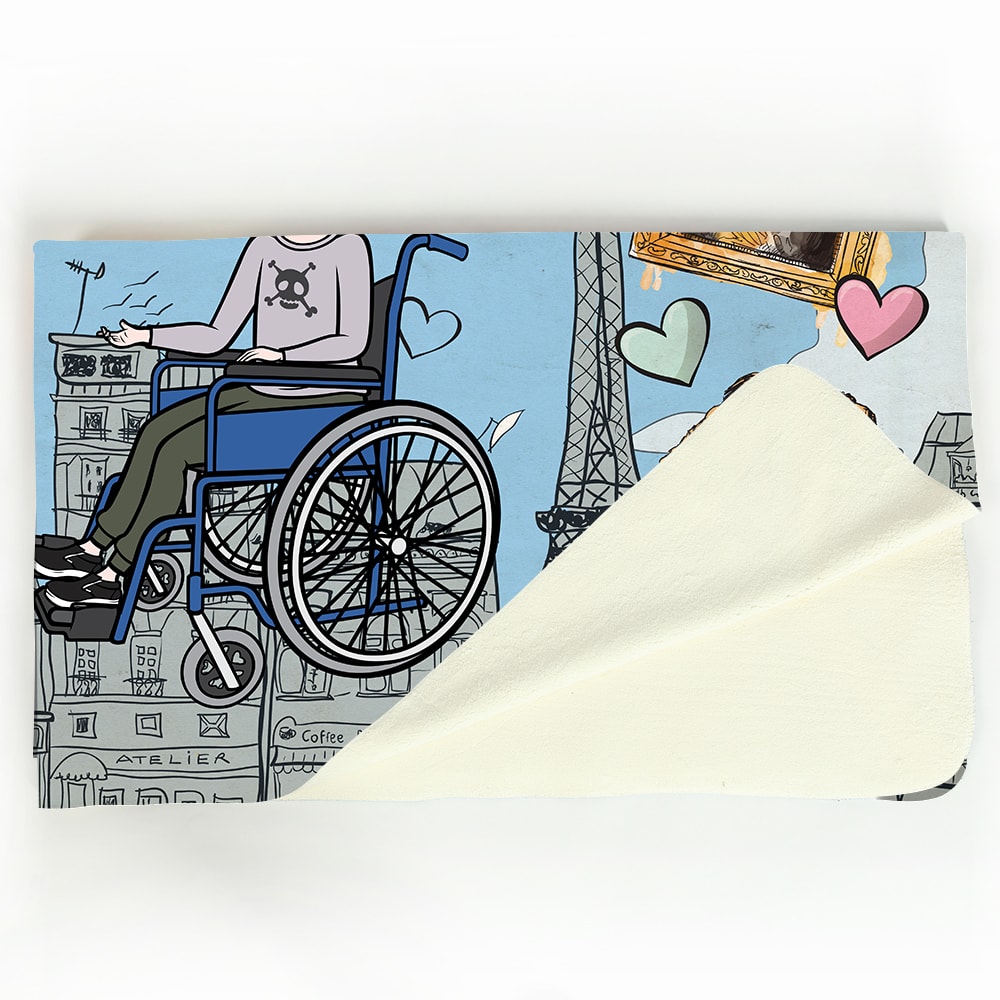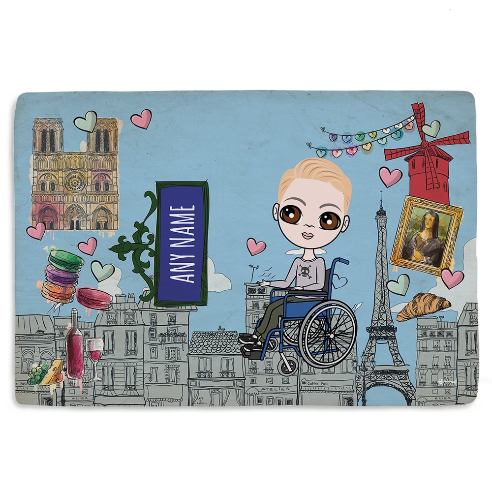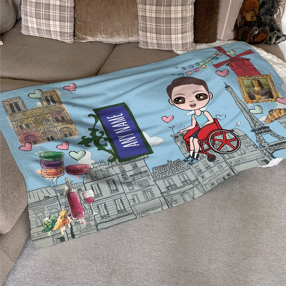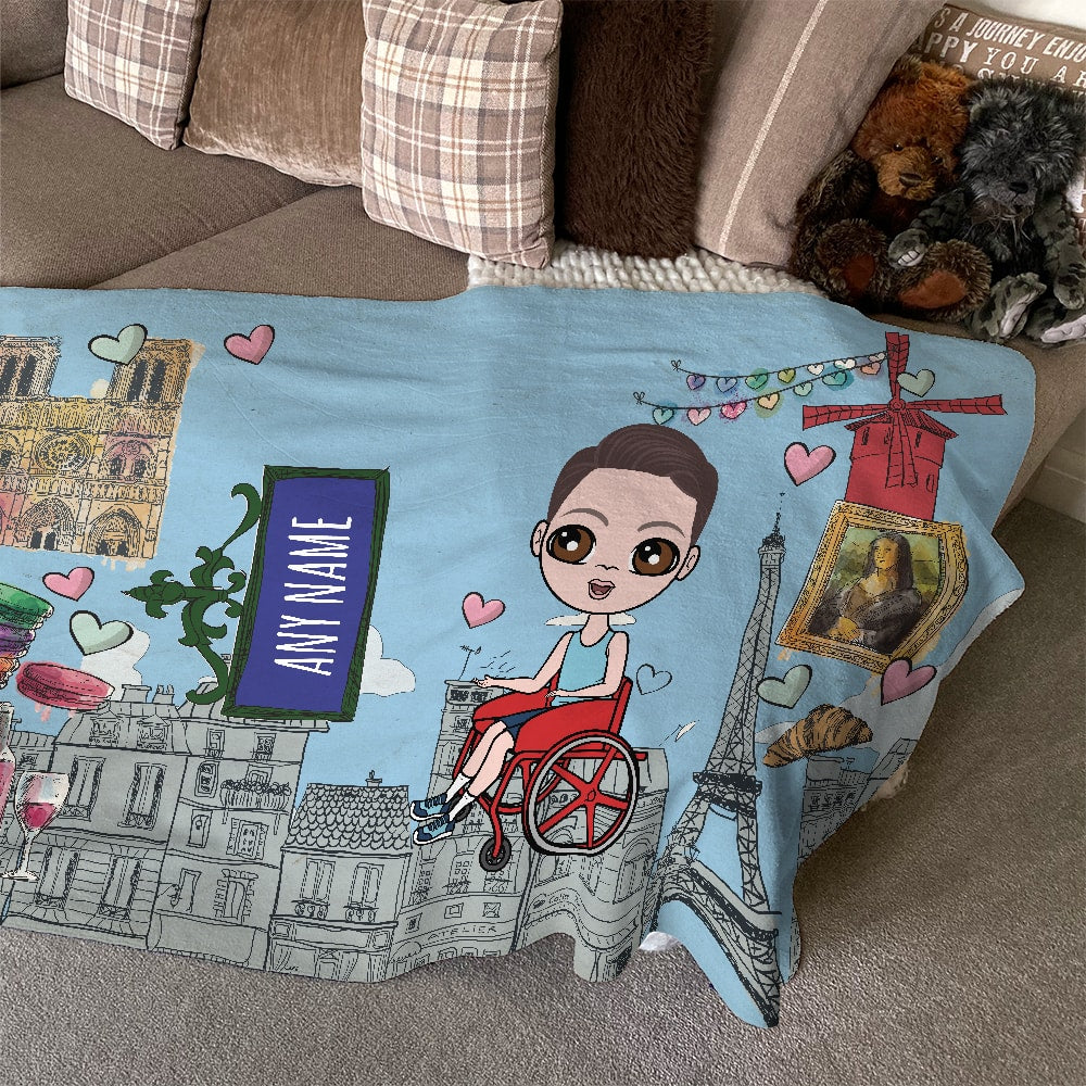 Get cosy and wrap yourself in iconic Paris love - with your very own personalised Jnr Boys Fleece Blanket, featuring YOU at the centre of this super soft fleece blanket with a cool iconic Paris design, along with a cool custom designed wheelchair.