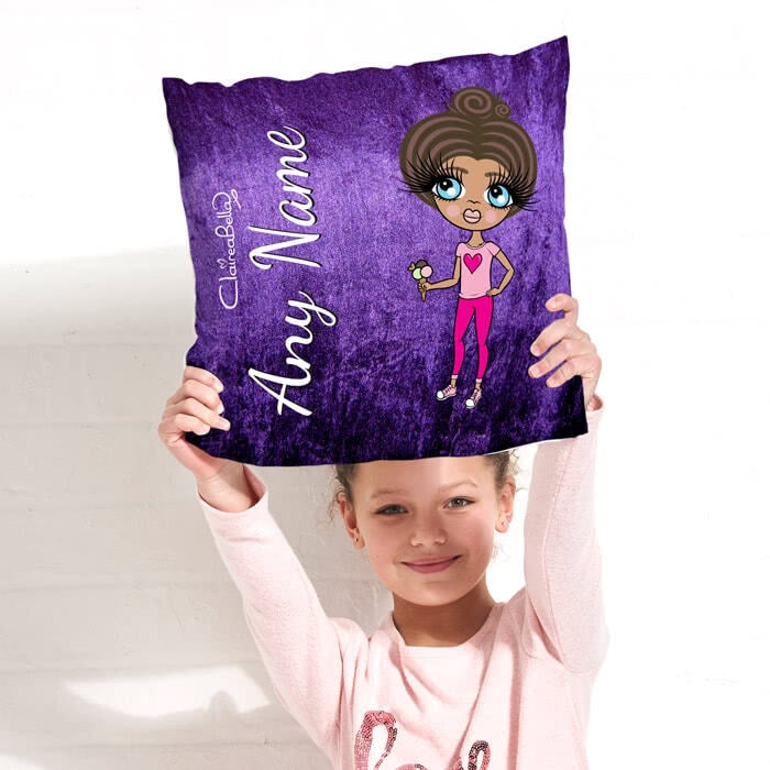 ClaireaBella Girls Square Cushion - Purple Velvet Effect