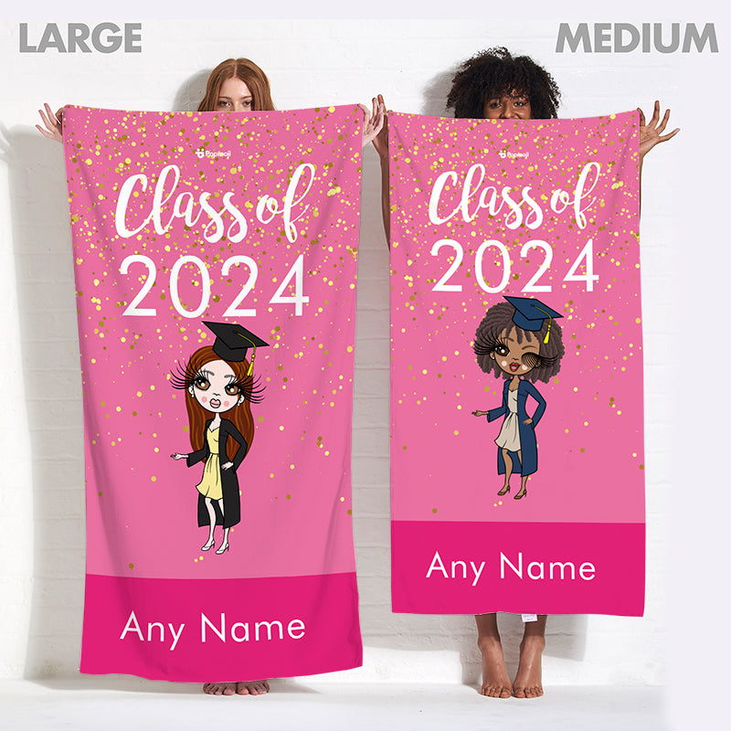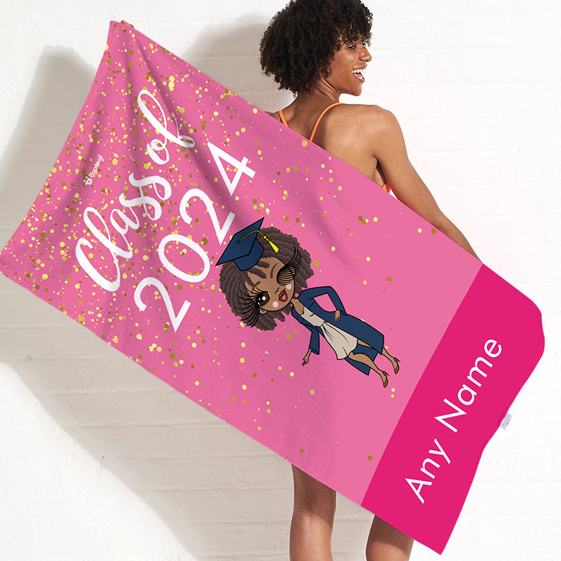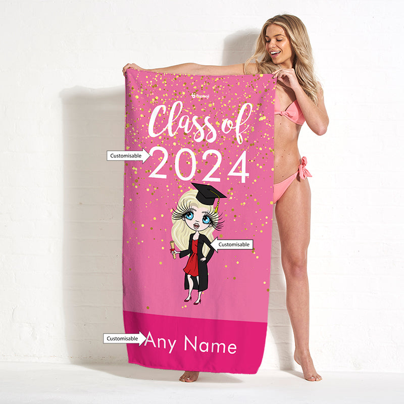 Celebrate the big day and treat a special student graduate with an extra special personal & unique gift! The ClaireaBella Graduation Beach Towel, features your created character on a classy & fun design.