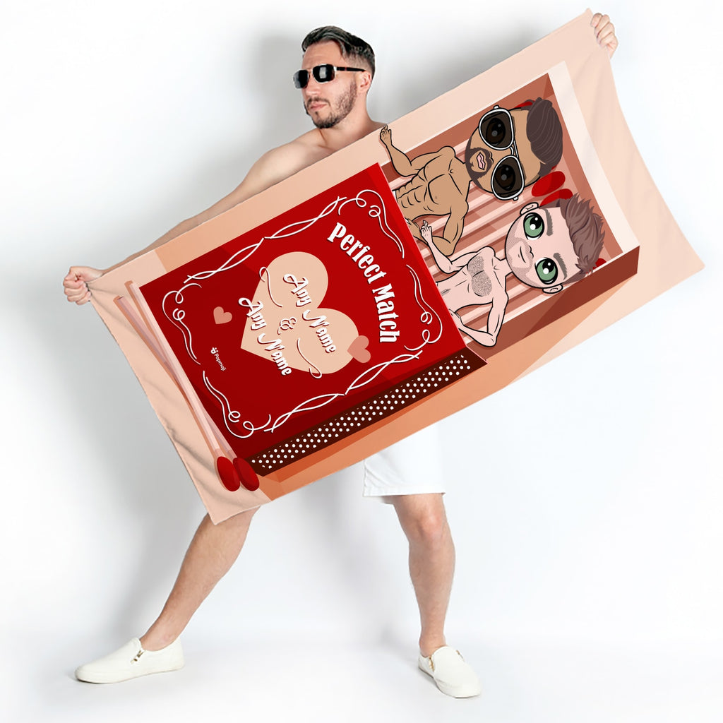 Brand new and exciting fully personalised Multi Character beach towels! Add some extra special personal romance to your vacation or break, by creating 2 adult characters to feature on this romantic & fun-loving design.