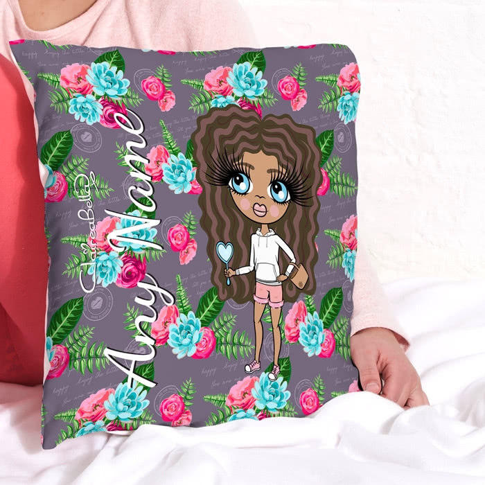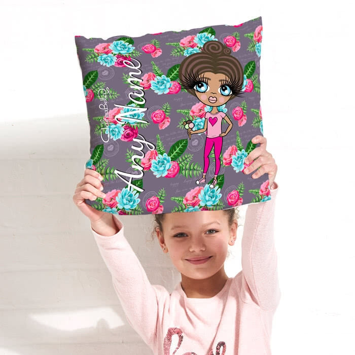 ClaireaBella Girls Square Cushion- Grey Floral
