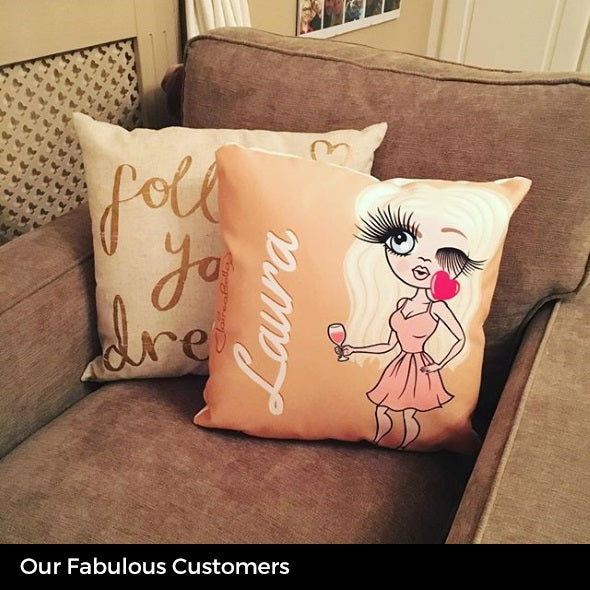 Add some personal glamour to your home with this stunning personalised ClaireaBella Square Cushion in beautiful Mocha. All you need to do is create your very own Claireabella Character to represent you at your best to feature on a gorgeous Mocha background.