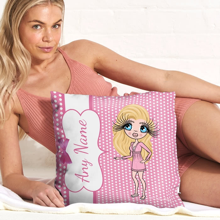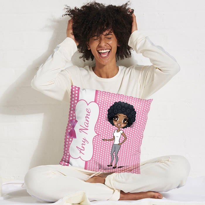 Bring some personalised fun and style in your home with this cute ClaireaBella Polka Dot Square Cushion. All you need to do is create your very own Claireabella Character to represent you at your best to feature on a cute pink polka dot design background.
