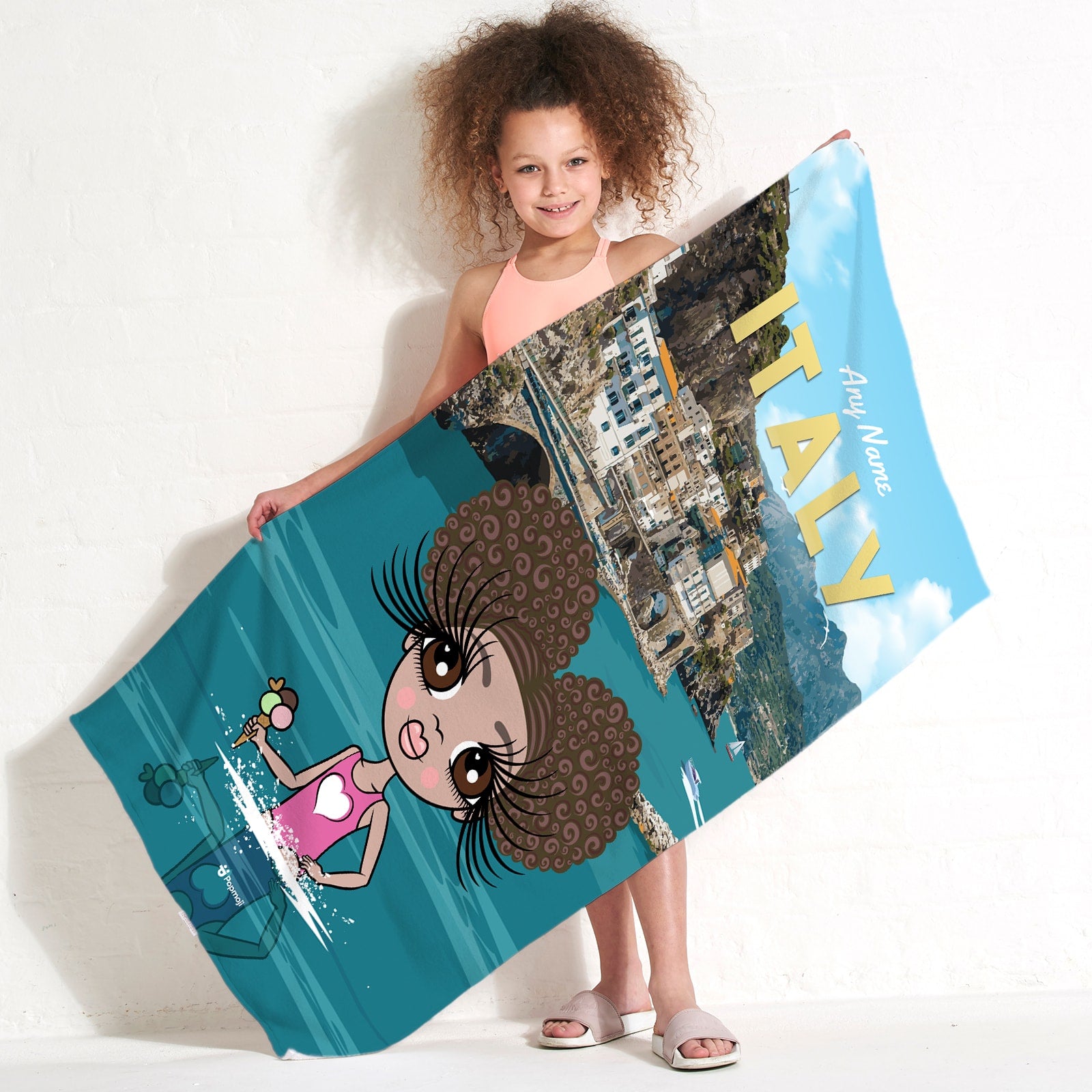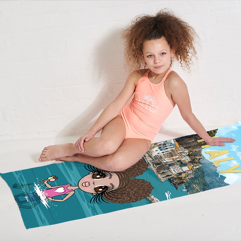 Time to head to the beach or pool with their very own Personalised ClaireaBella Girls Beach Towel, with your created character at the centre of this sweet design.