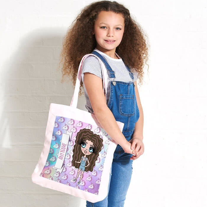 ClaireaBella Girls Unicorn Emoji Pastel Canvas Shopper