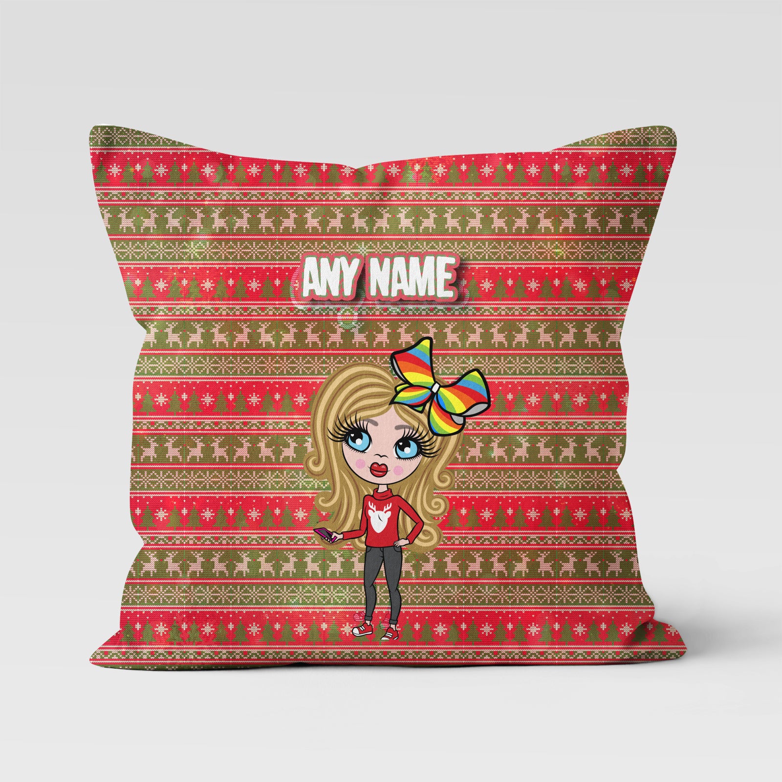 ClaireaBella Girls Personalised Christmas Knit Cushion