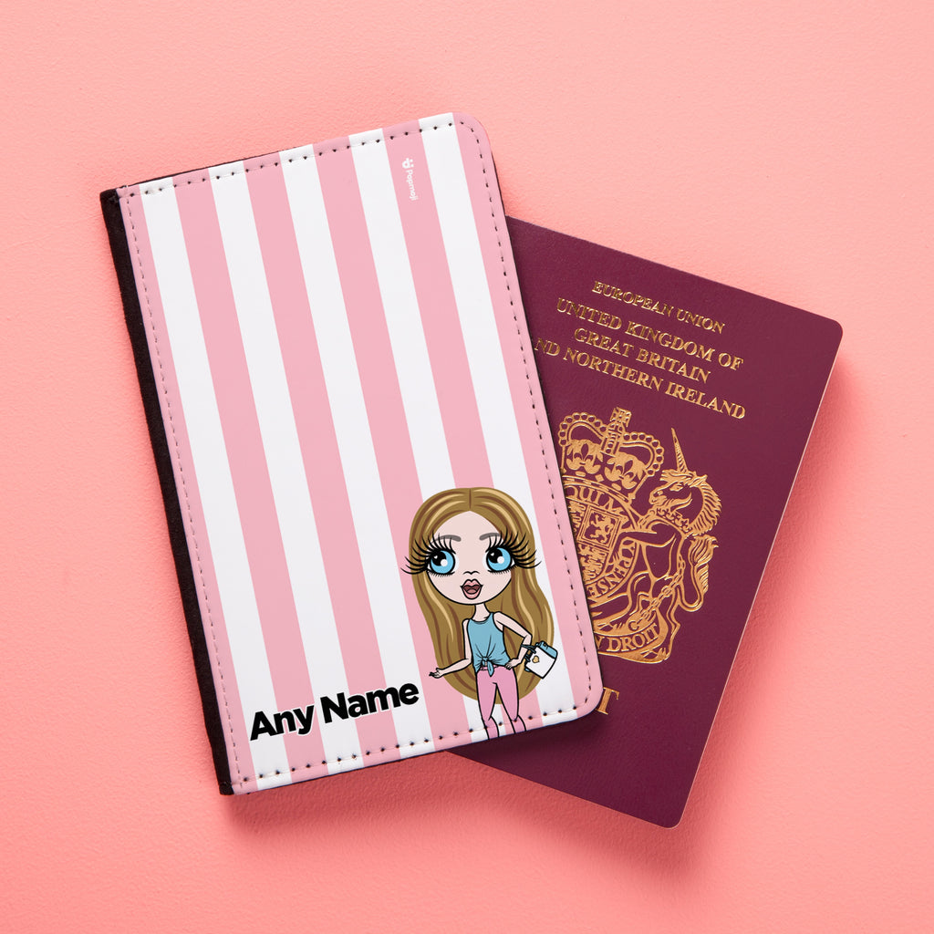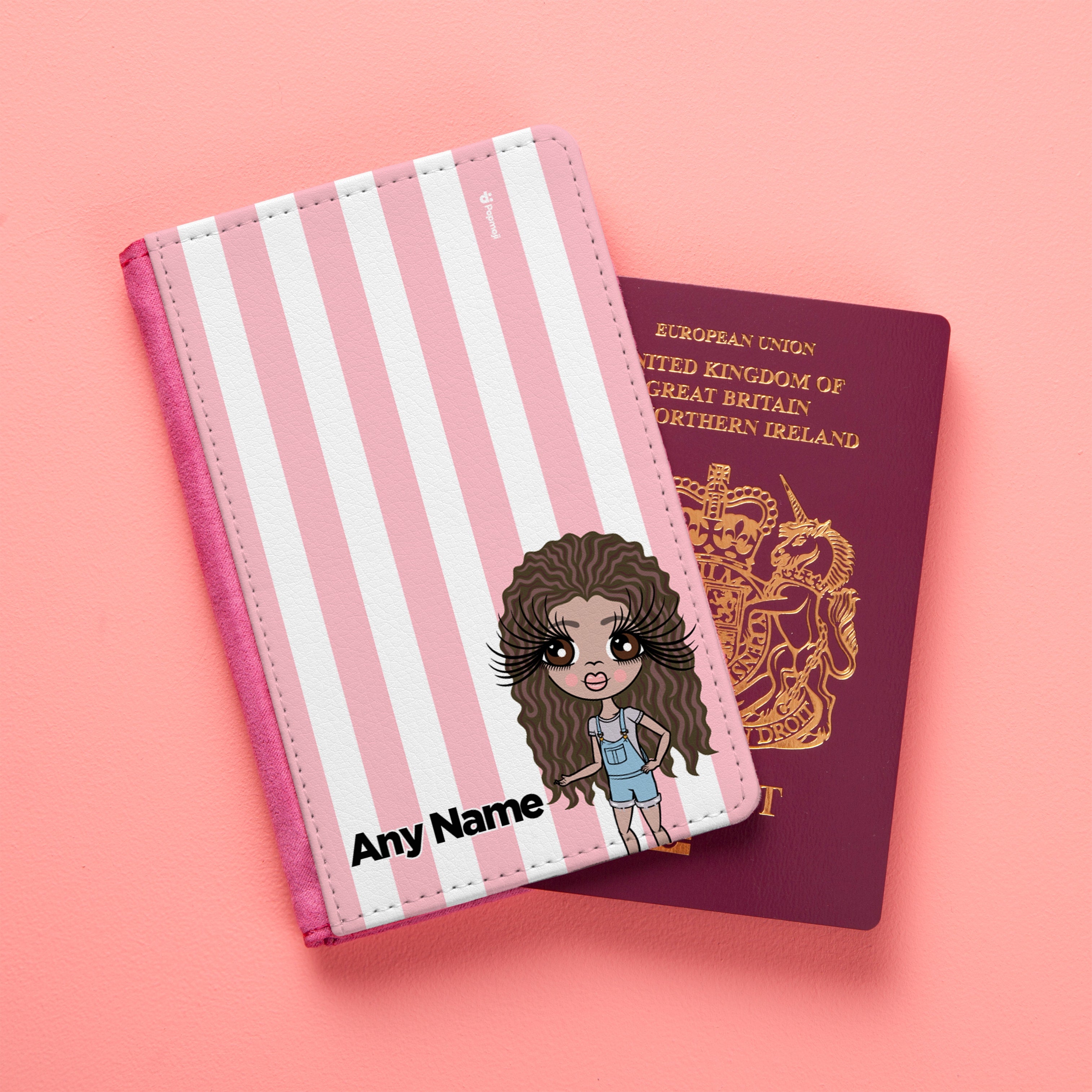 ClaireaBella Girls Personalised Light Pink Stripe Passport Cover