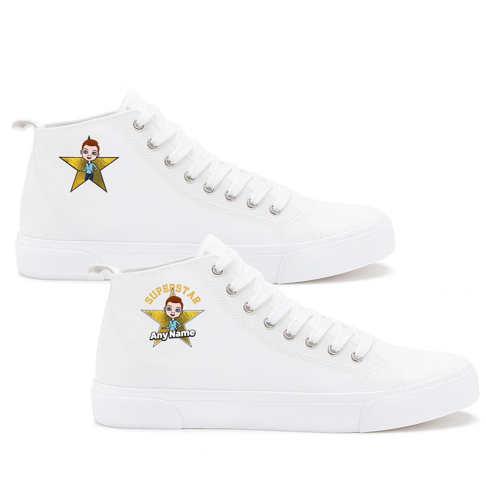 Get ready to level up your style with the Jnr Boys X AKEDO Superstar High Top Trainers - awesome custom kicks that let you show off exactly who you are. This collab brings your own personalised character to life on a pair of stand out trainers made for style, confidence, and pure cool factor