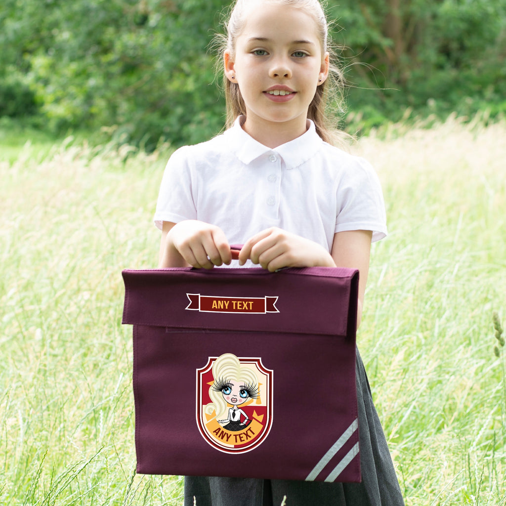 ClaireaBella Girls Premium Personalised School Emblem Burgundy Book Bag