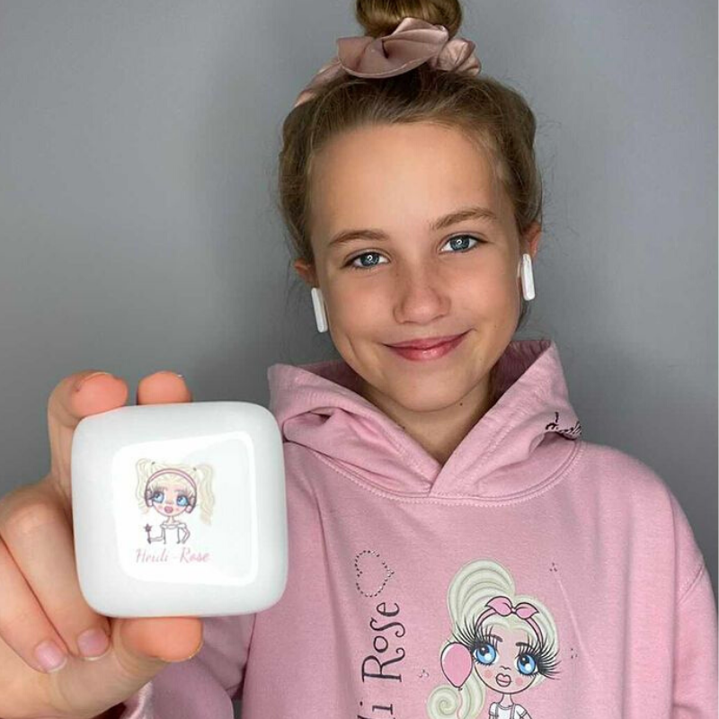 The stylish ClaireaBella Girls Personalised Earphones, aren't just fully personalised with your character but the sound is great for all music fans and provides fantastic noise-cancelling technology. The microphone provides clear sound when talking and a good wake up voice assistant. The earphones are touch control operated and simple to use with the ease of a a touch.