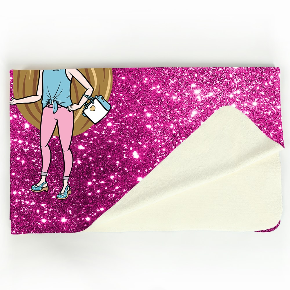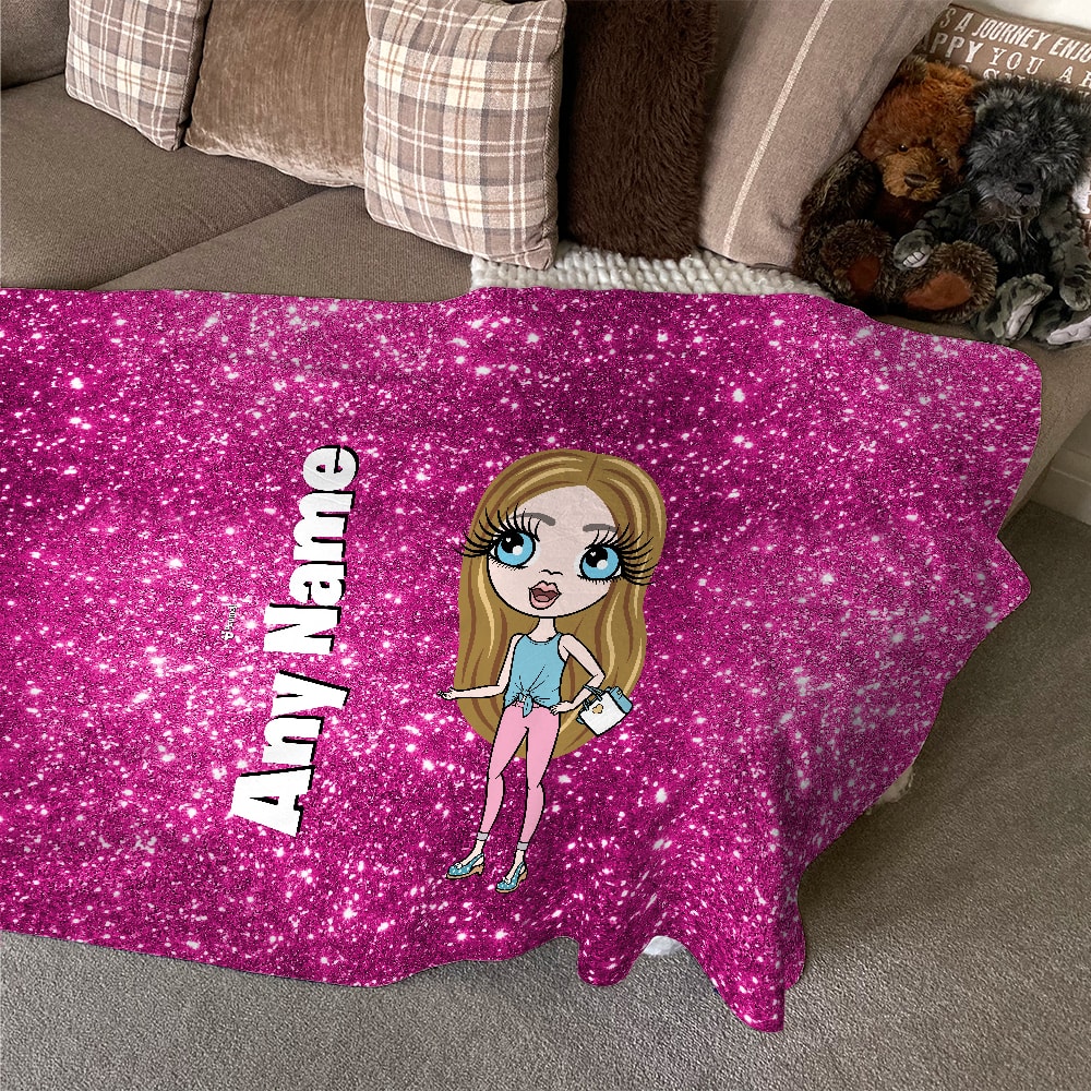 ClaireaBella Girls Pink Glitter Effect Fleece Blanket