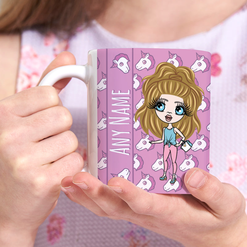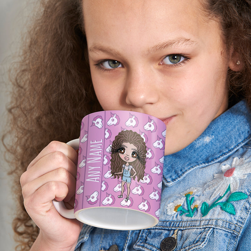 Warm up your hands with this cute personalised ClaireaBella girls Unicorn Emoji mug .