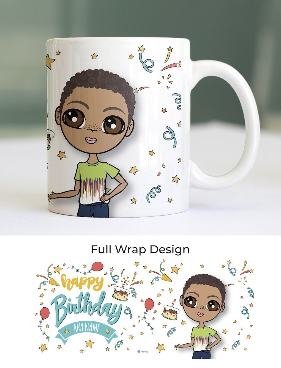 Celebrate his birthday and uniqueness, with the fully personalised Jnr Boys Mug, featuring your created character on a cool & fun birthday background.