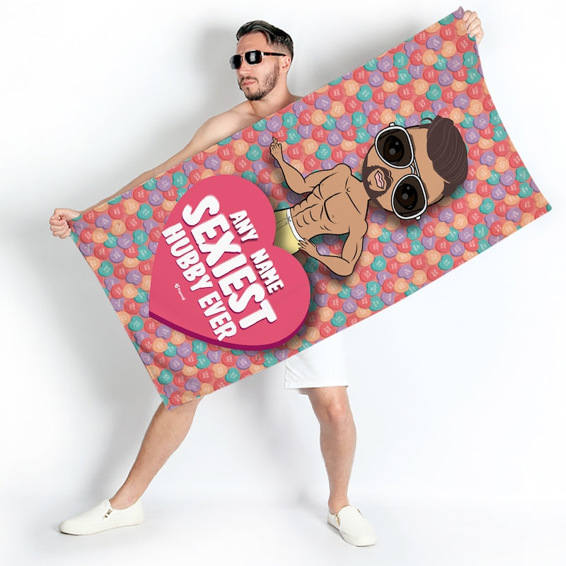 Head off to the beach, whilst being at the centre of your holidaying adventures with the new MrCB Beach Towel, featuring YOU in the centre of this fun-loving design.