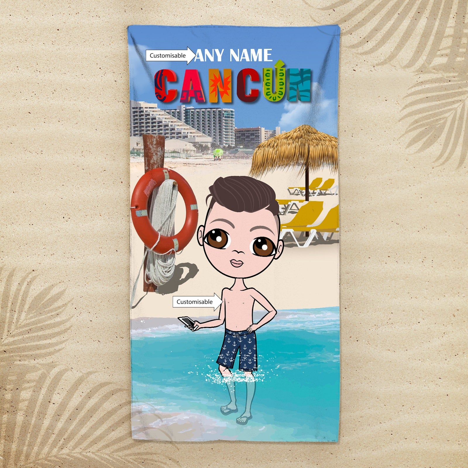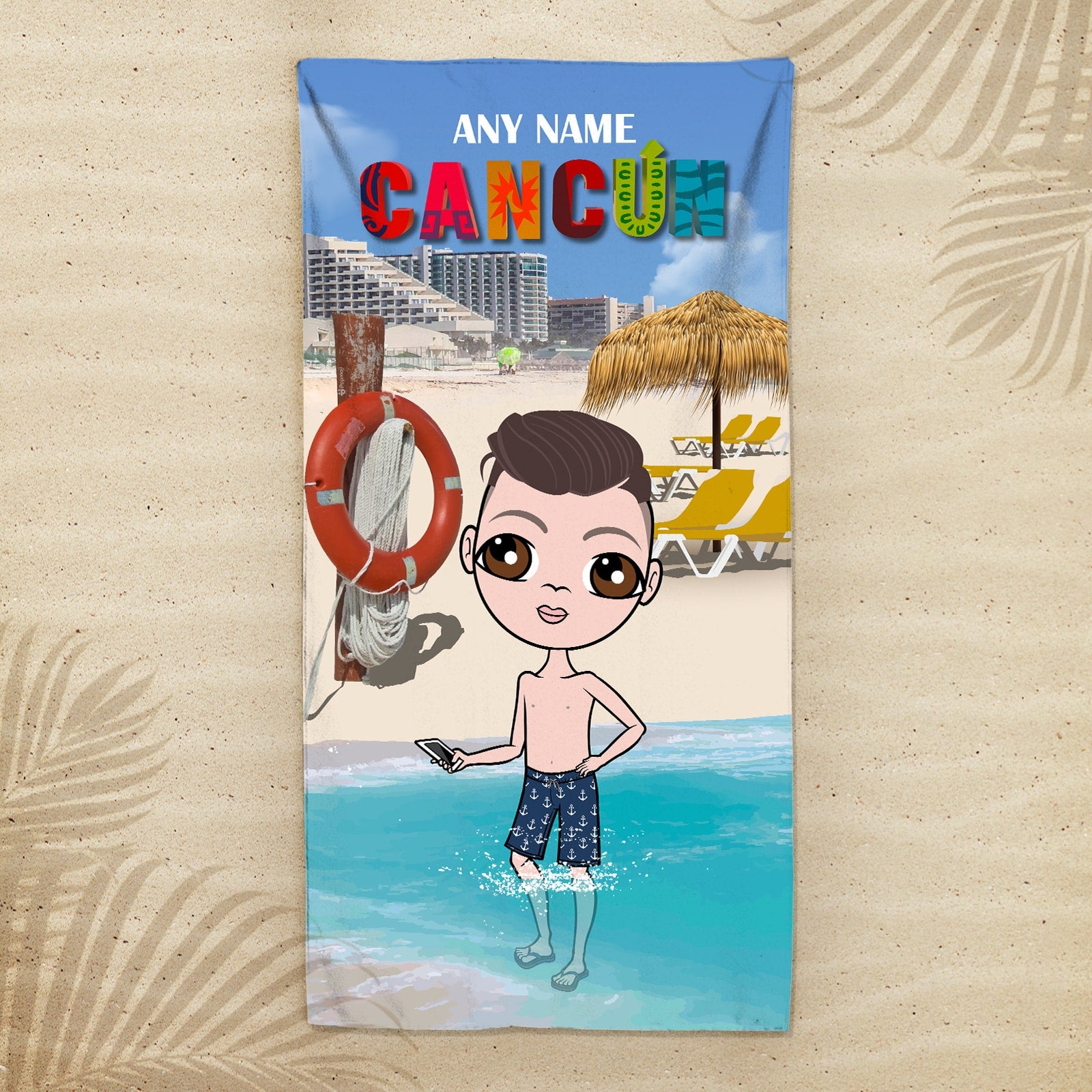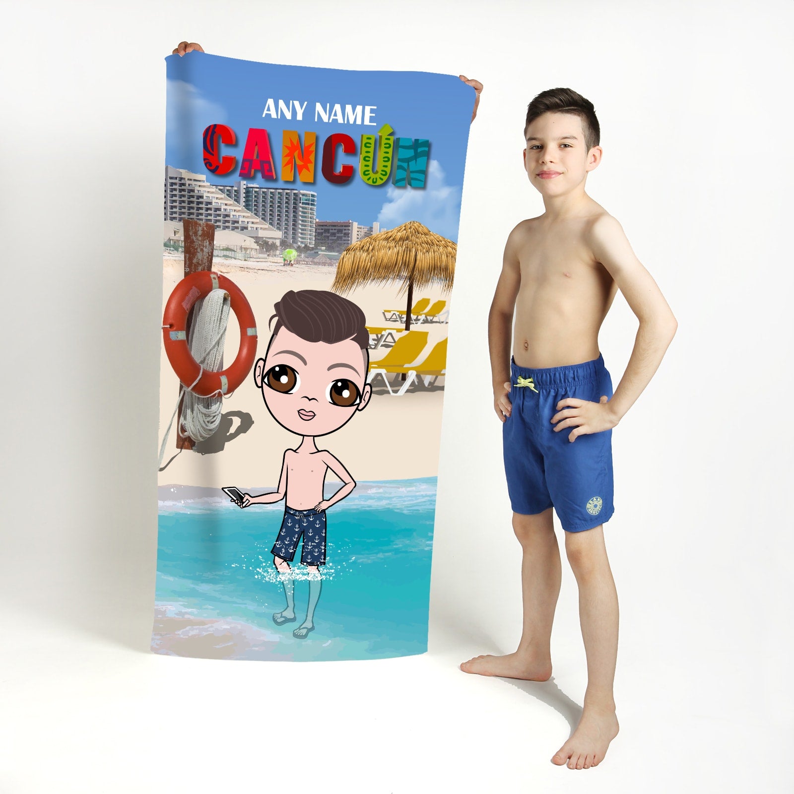 Head to the beach or pool in true Jnr boys style!  - with your very own personalised Jnr Boys Beach Towel, featuring YOU at the centre of this funky and fun design.