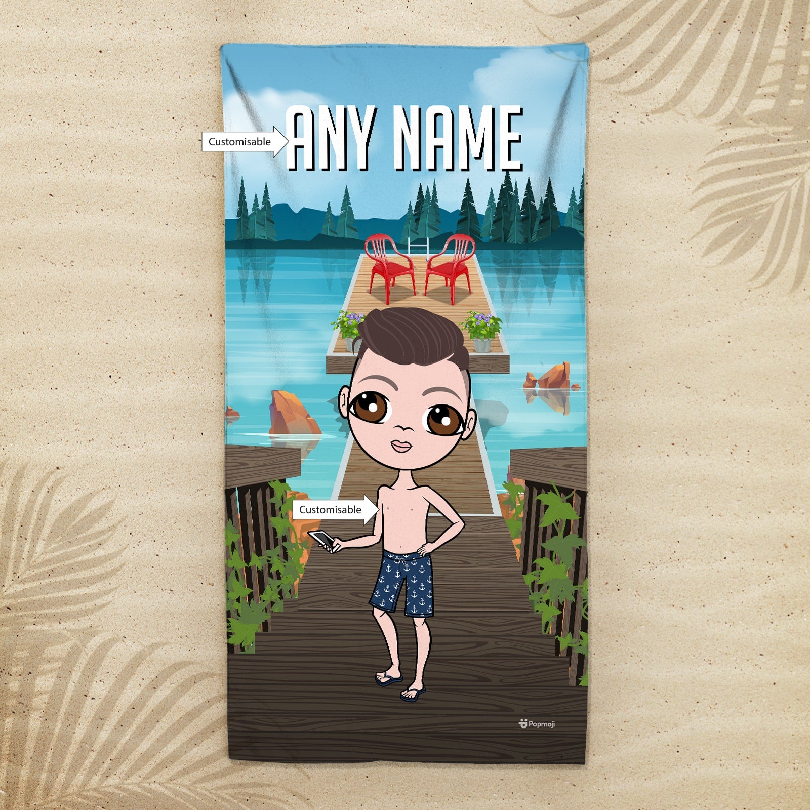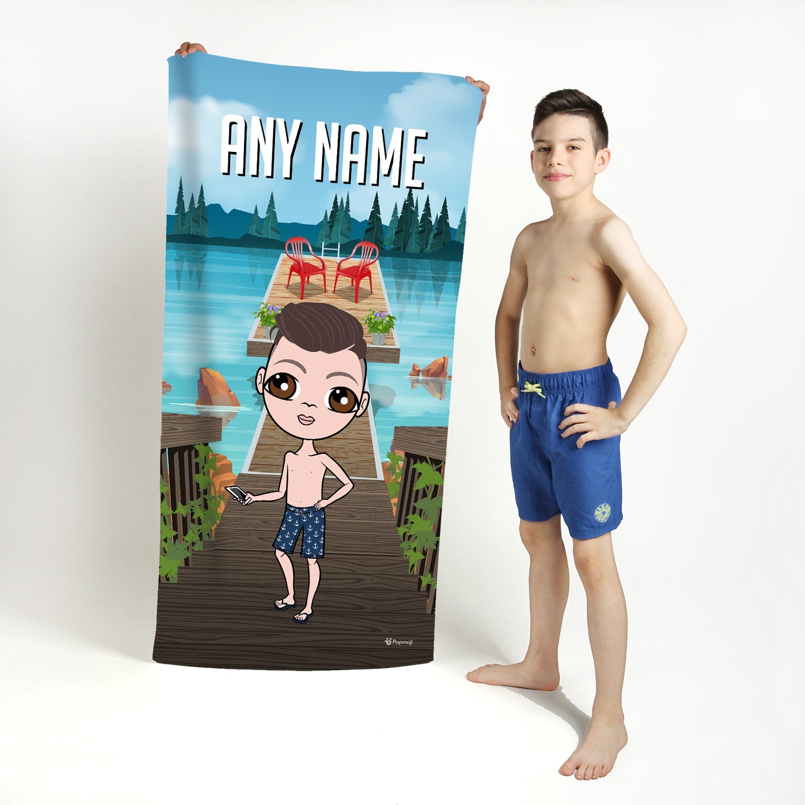 Head to the beach or pool in true Jnr boys style!  - with your very own personalised Jnr Boys Beach Towel, featuring YOU at the centre of this cool design.