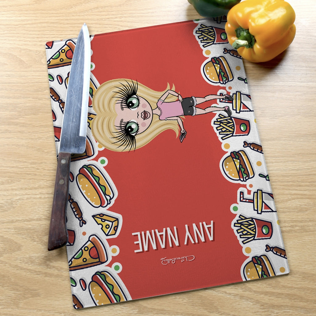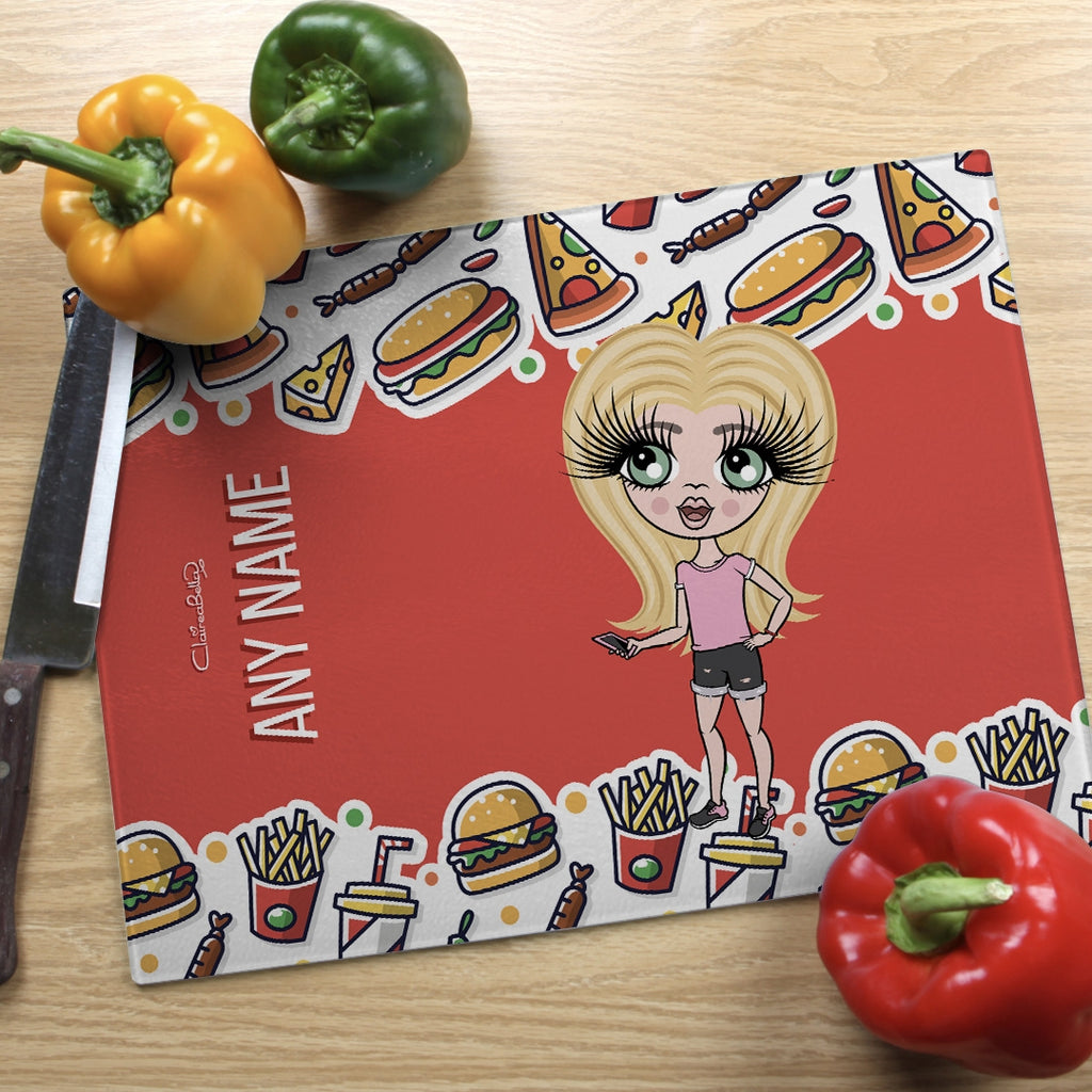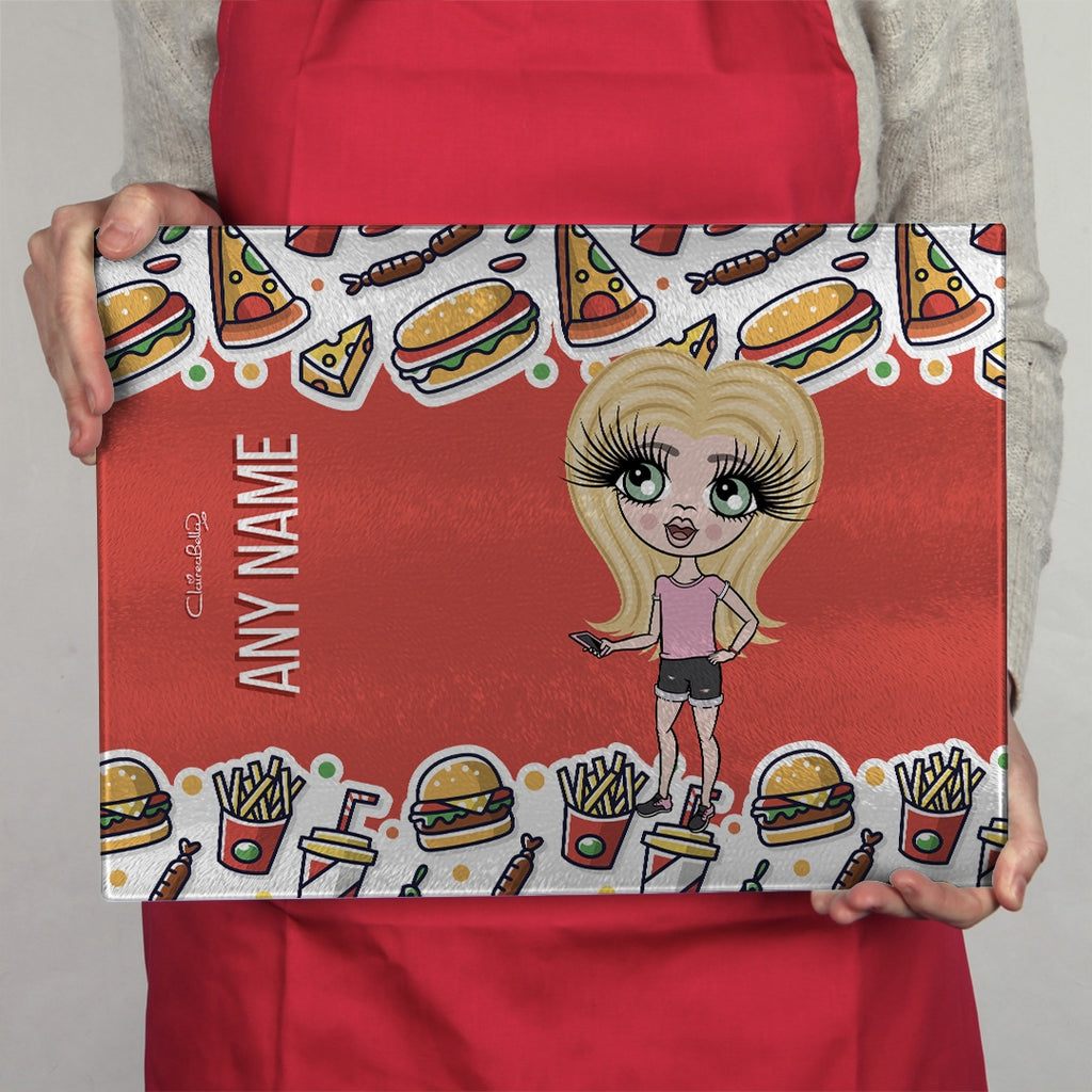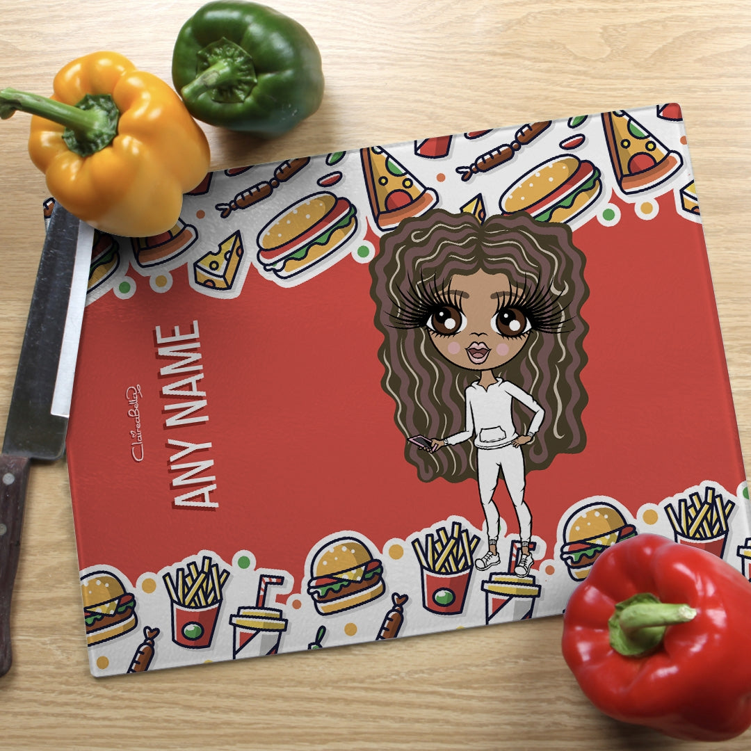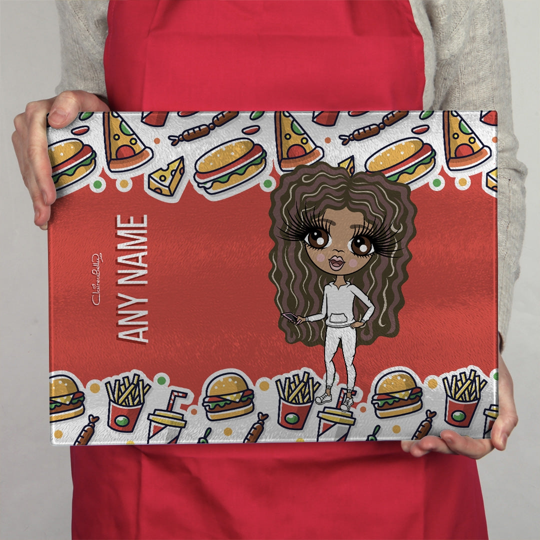 ClaireaBella Girls Landscape Glass Chopping Board - Fast Food