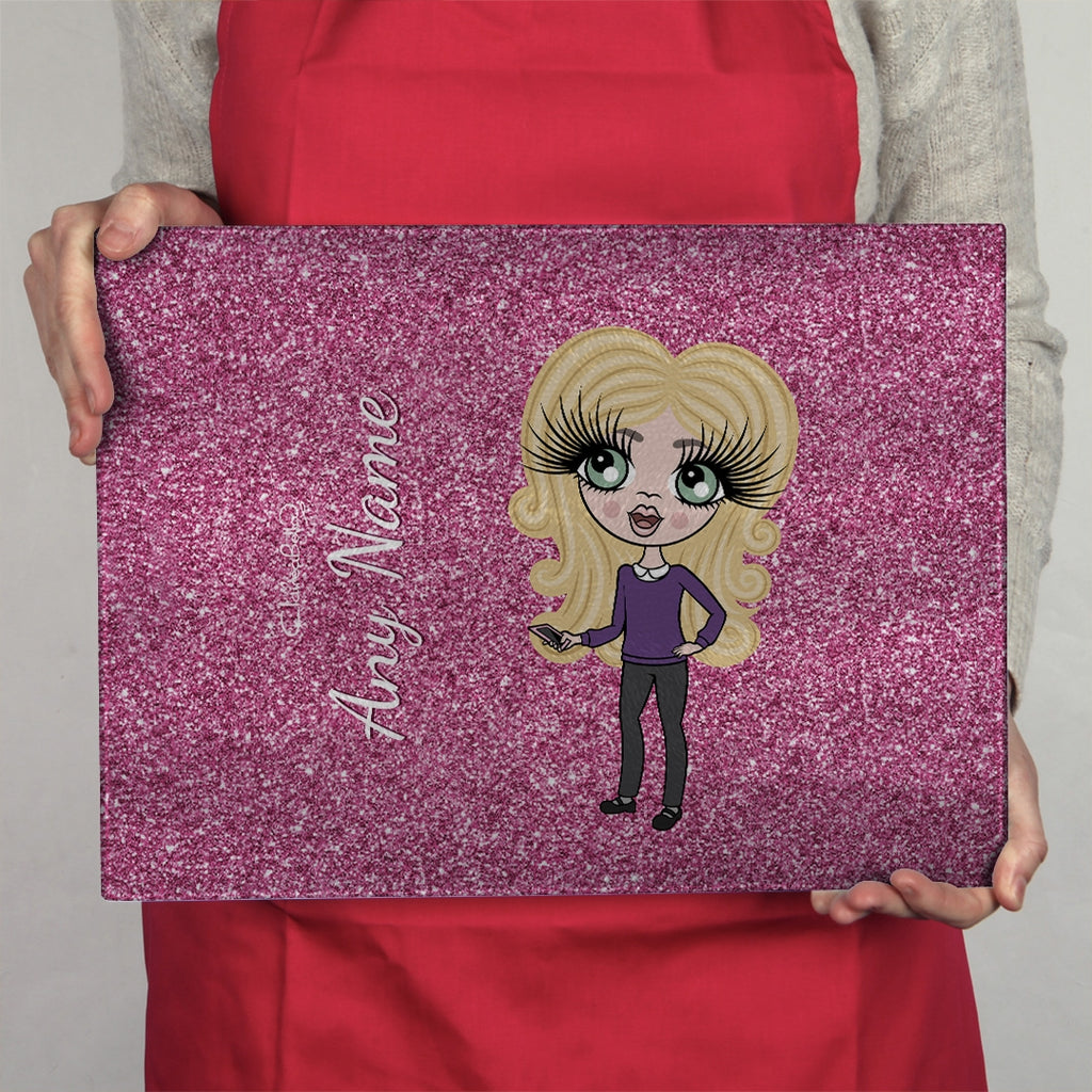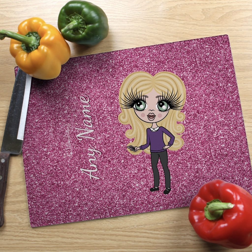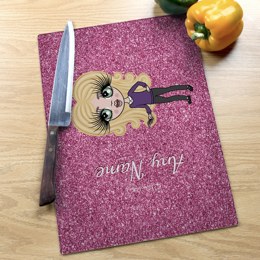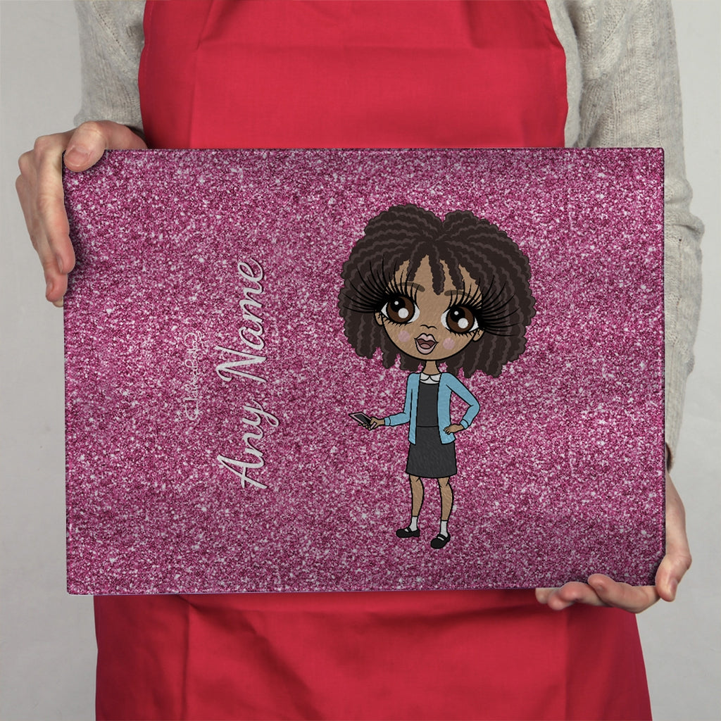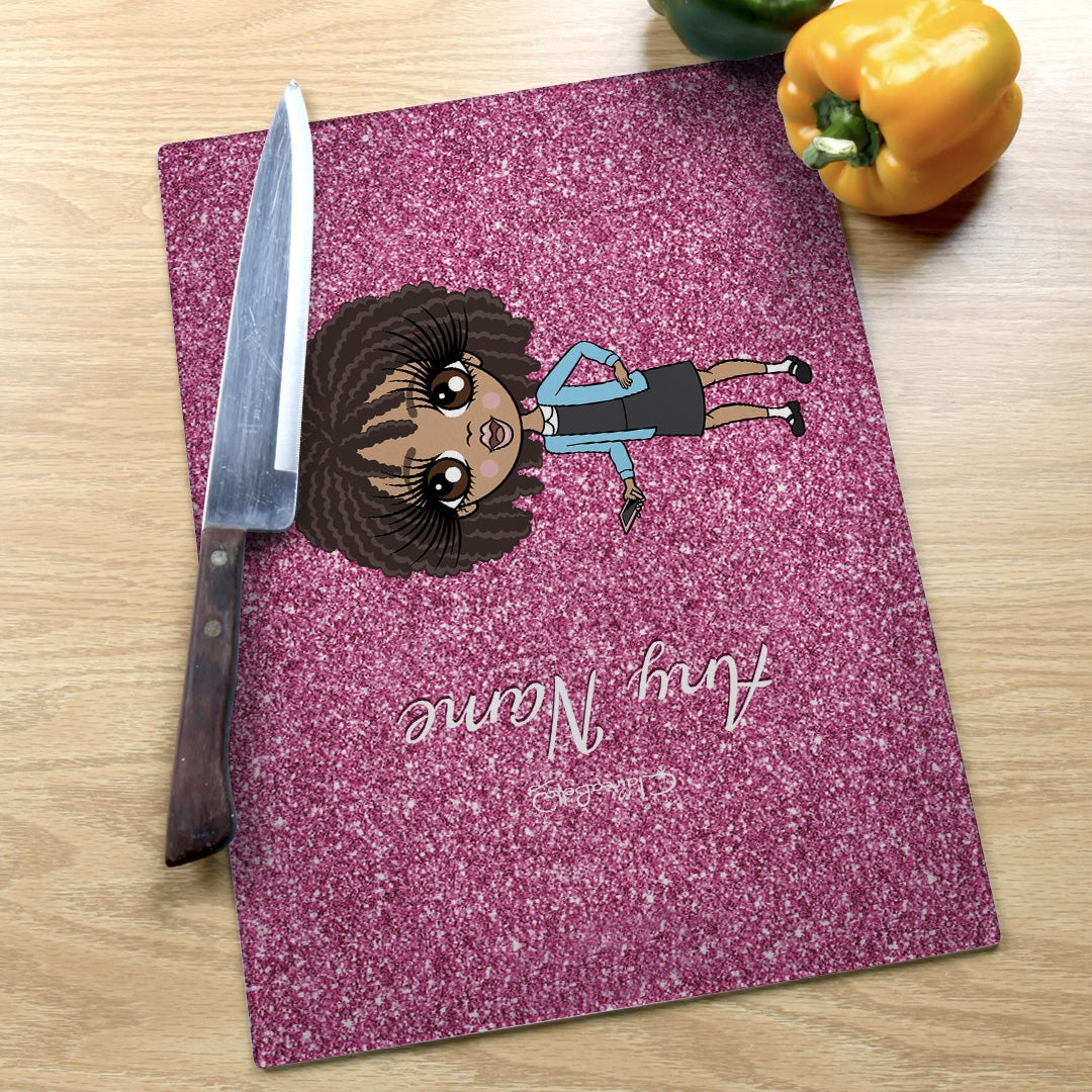 Add this glamorous addition to your little chefs kitchen essentials, personalised ClaireaBella Girls Glass Chopping Board featuring your created character at the centre of this glam pink glitter effect design.