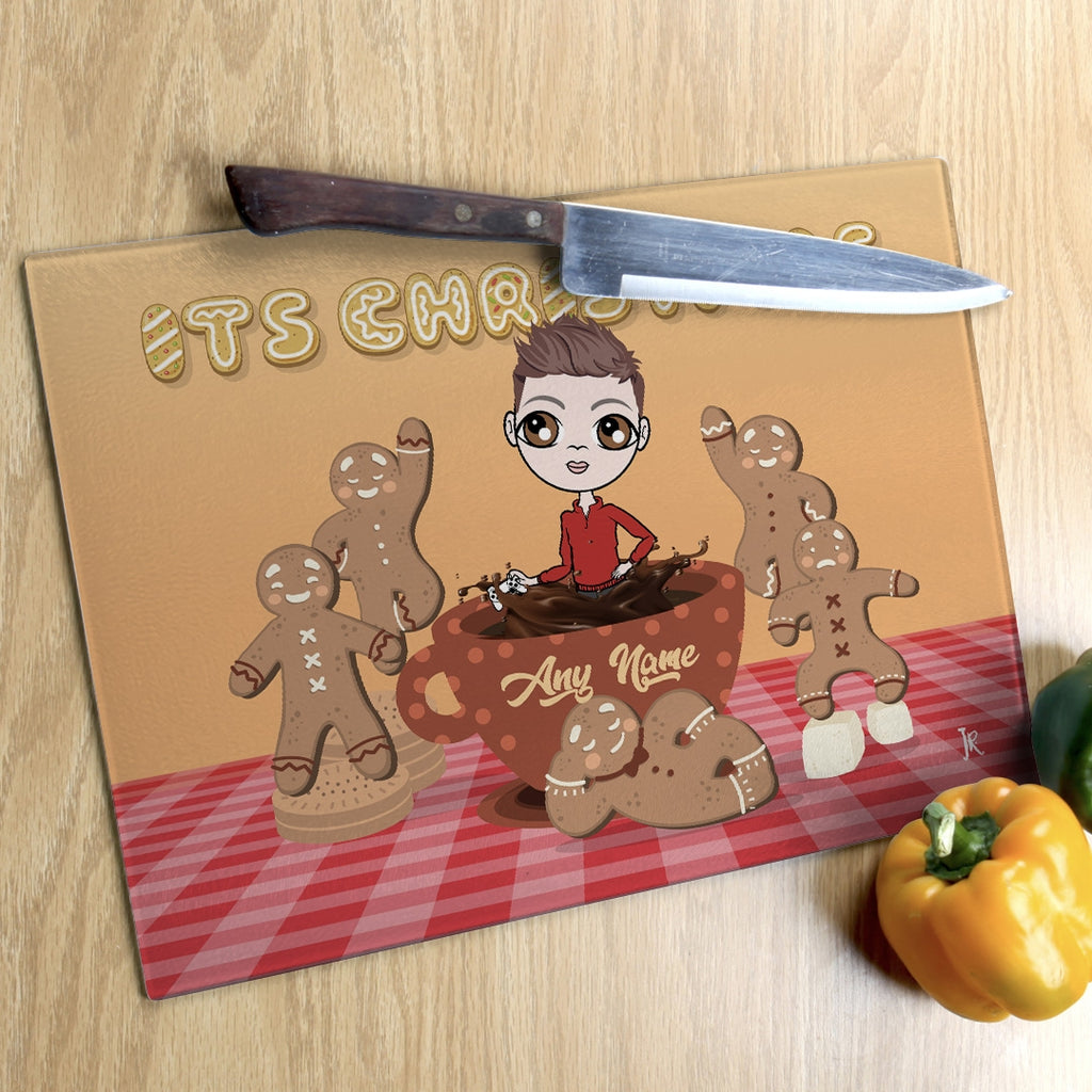 Jnr Boys Glass Chopping Board - Gingerbread Joy