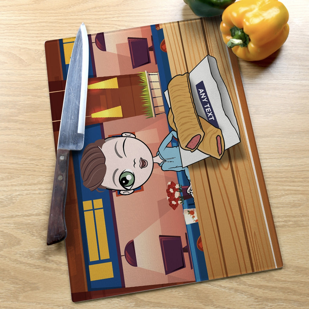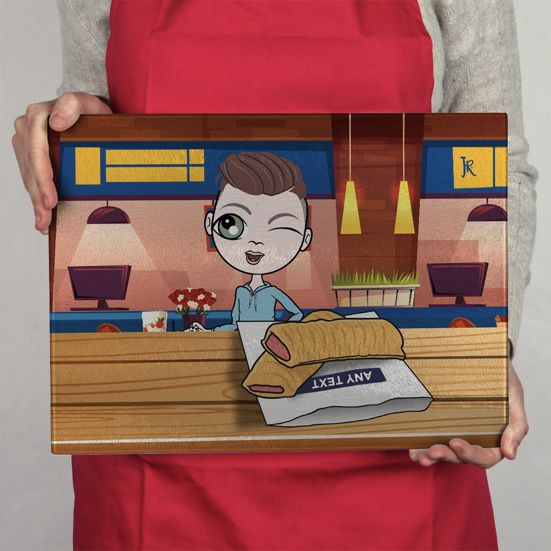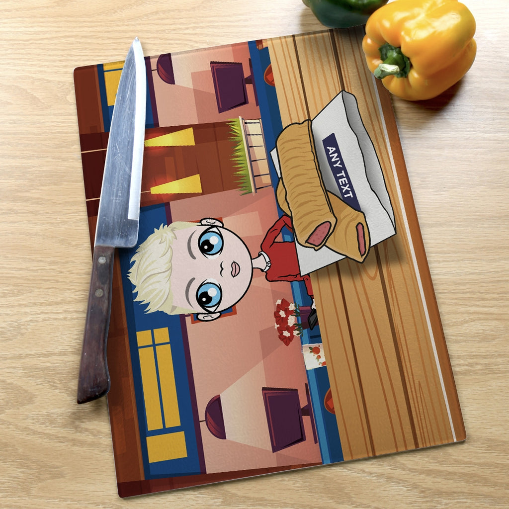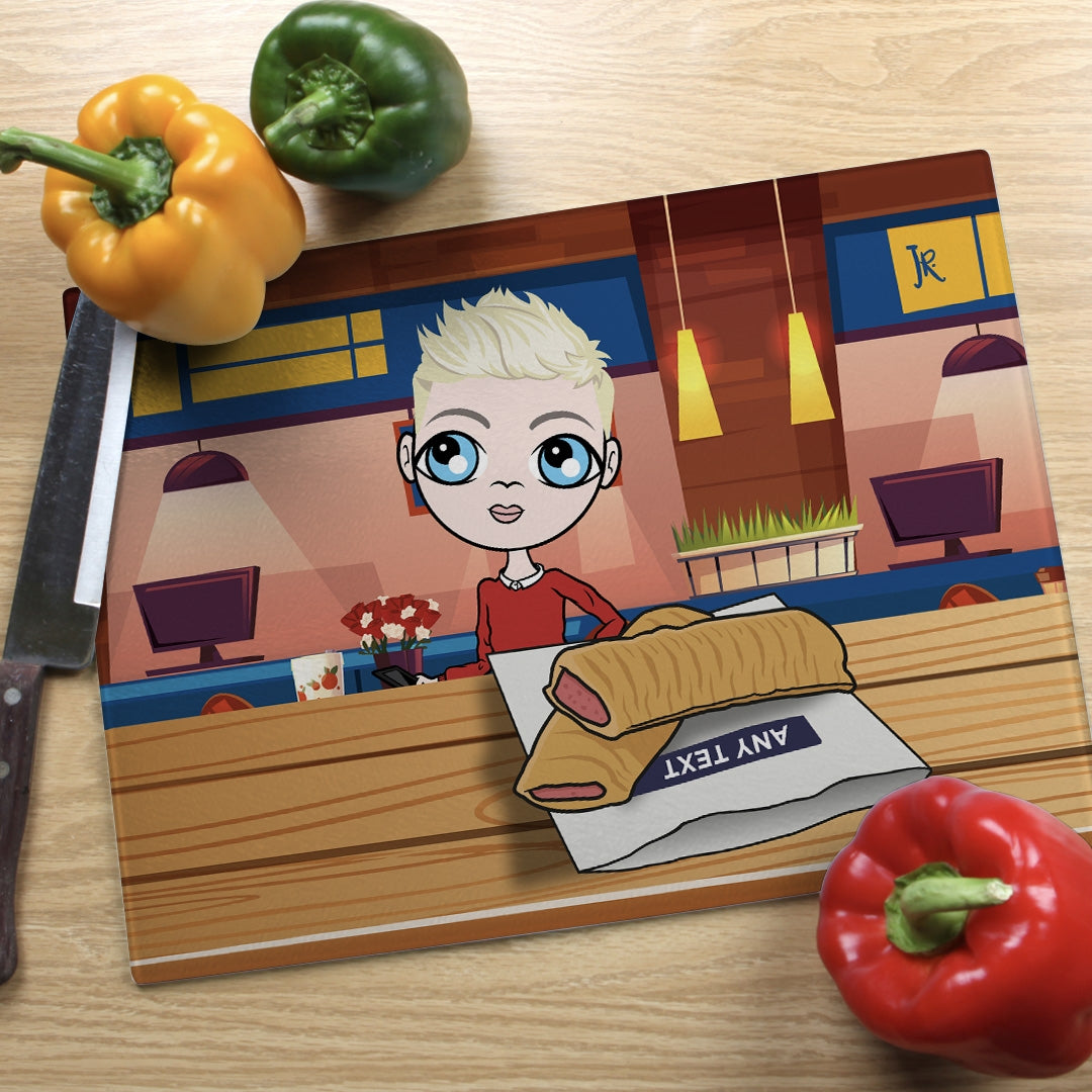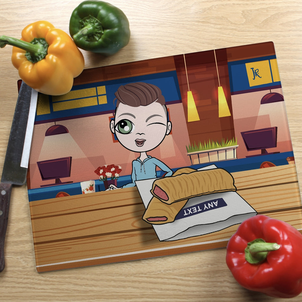 Jnr Boys Landscape Glass Chopping Board - Sausage Roll