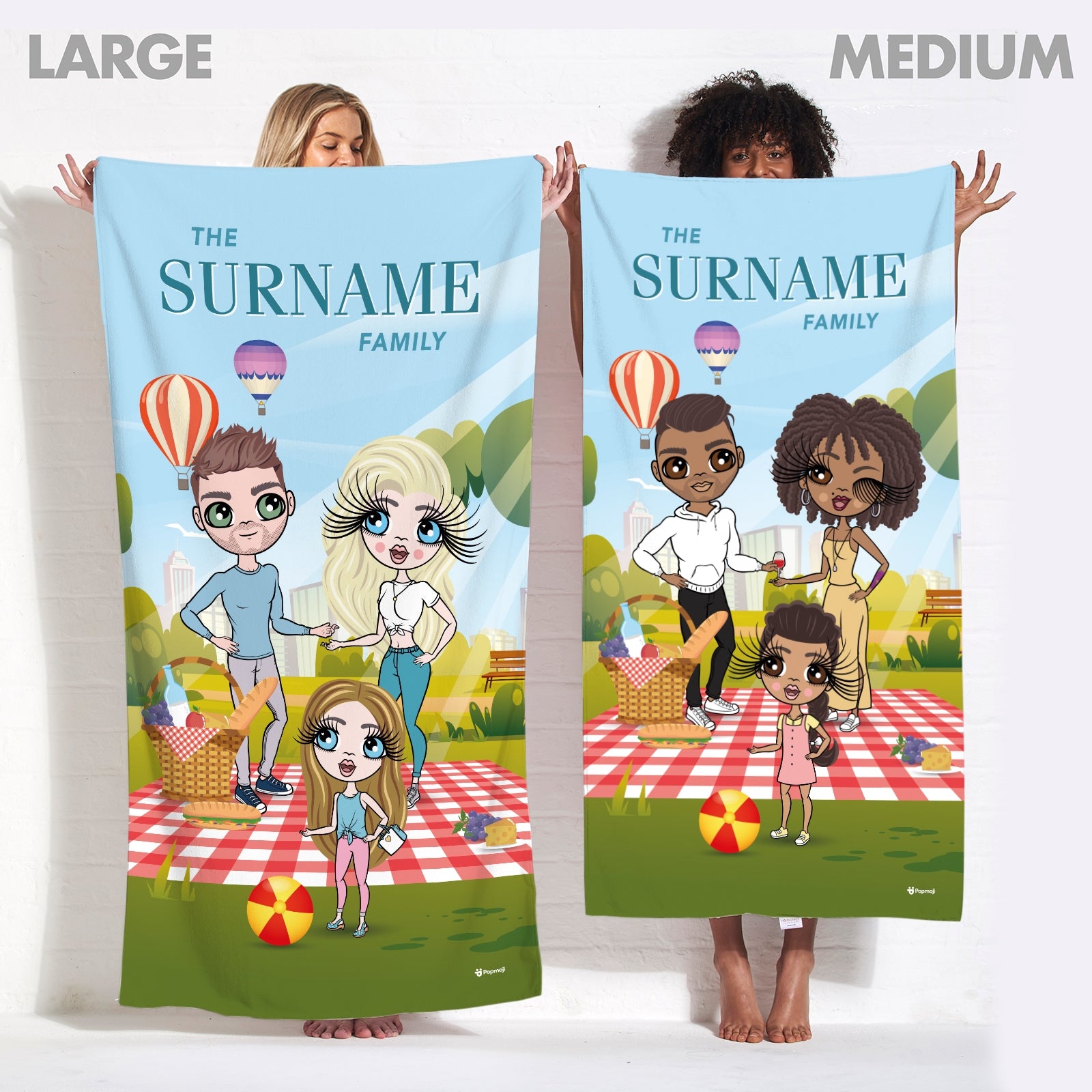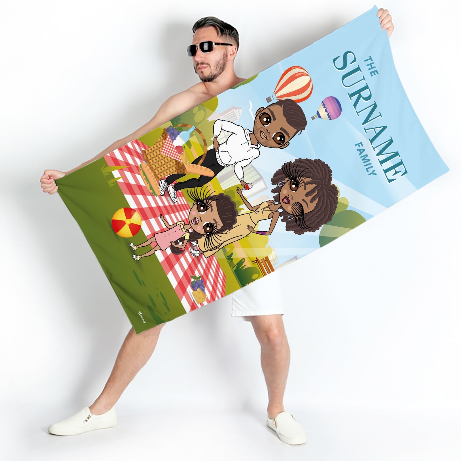 Multi Character Family Picnic Family Of 3 Beach Towel