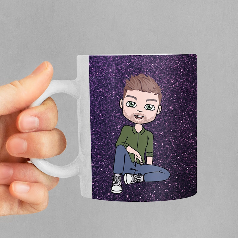 Add a large spoon of love, personality & pride to every cuppa. With the fully personalised MrCB Mug, featuring YOUR created character in new seated position, on this fab design.