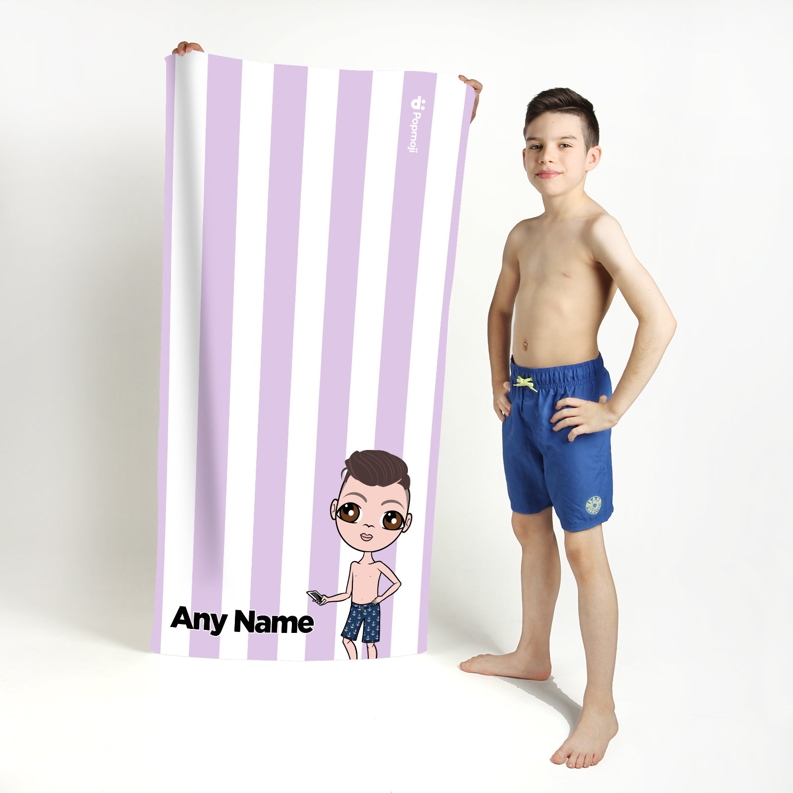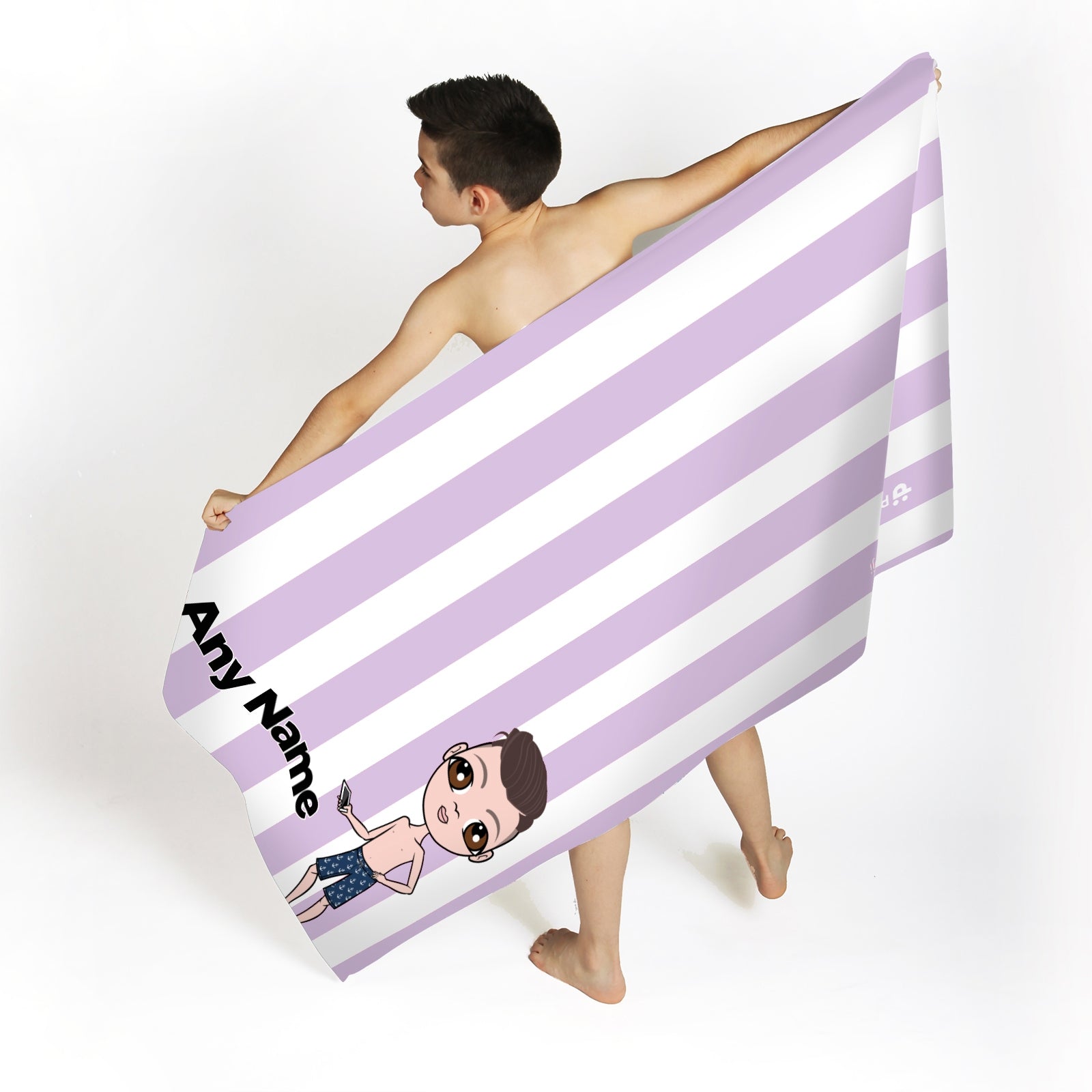 Jnr Boys Personalised Lilac Stripe Beach Towel