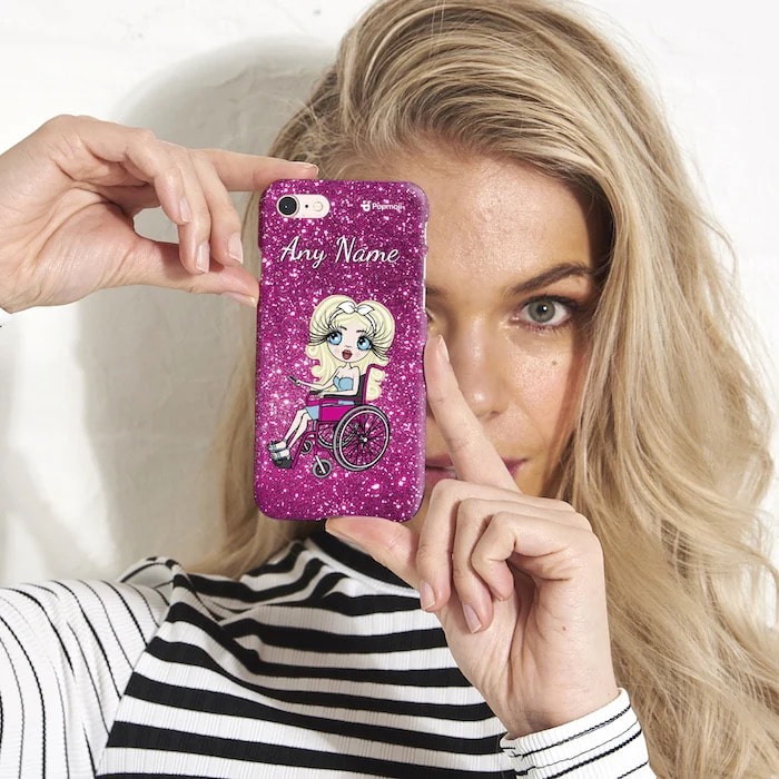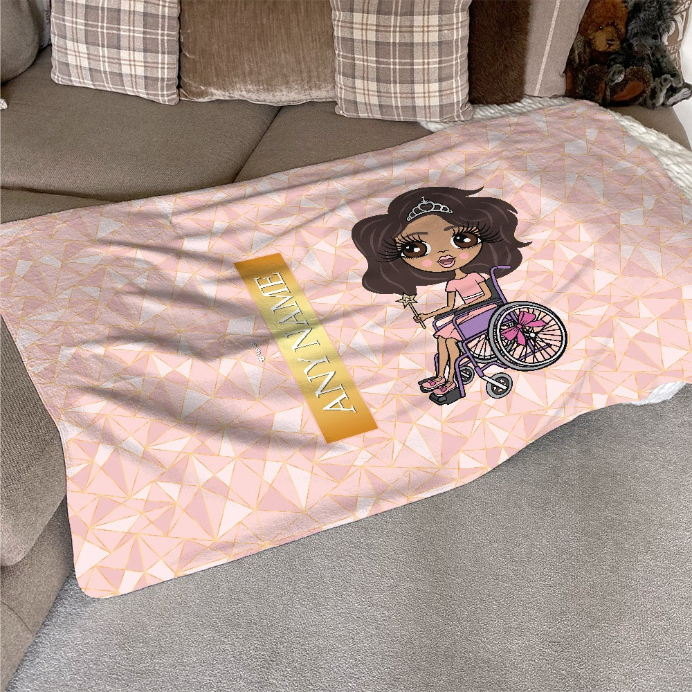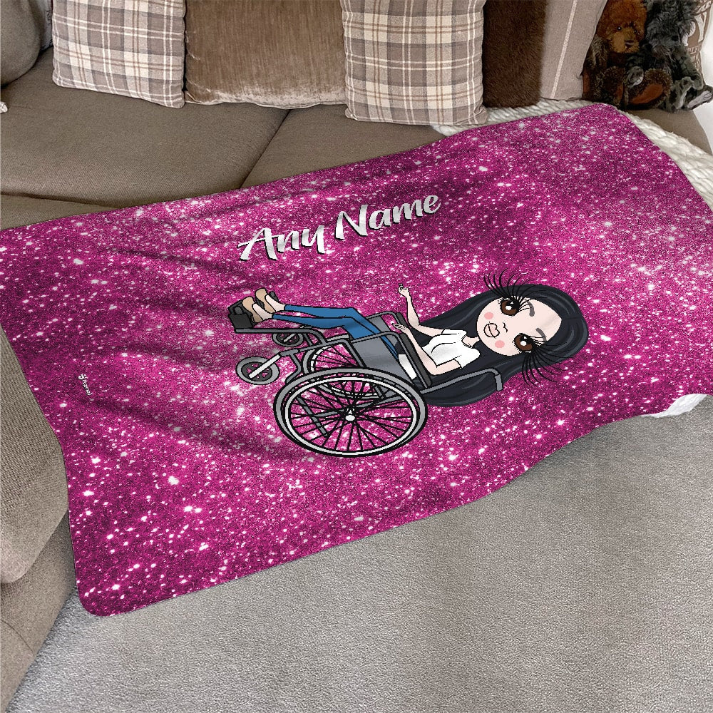ClaireaBella Wheelchair Portrait Pink Glitter Effect Fleece Blanket