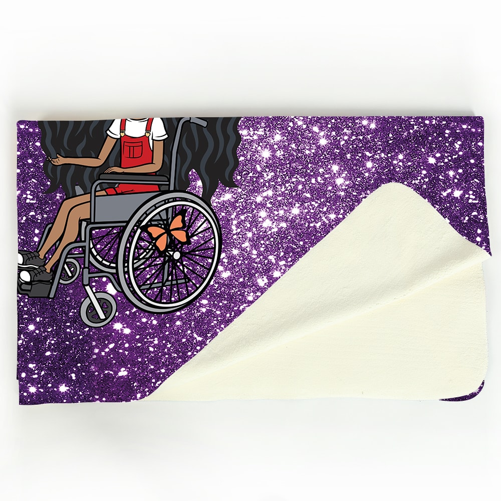 ClaireaBella Purple Glitter Effect Wheelchair Fleece Blanket