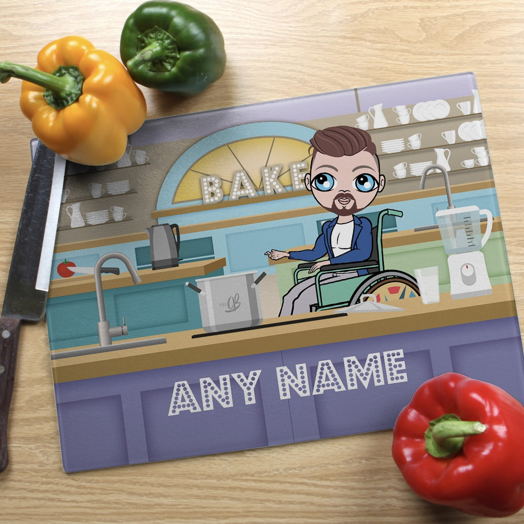 MrCB Wheelchair Glass Chopping Board - Kitchen Bake Off