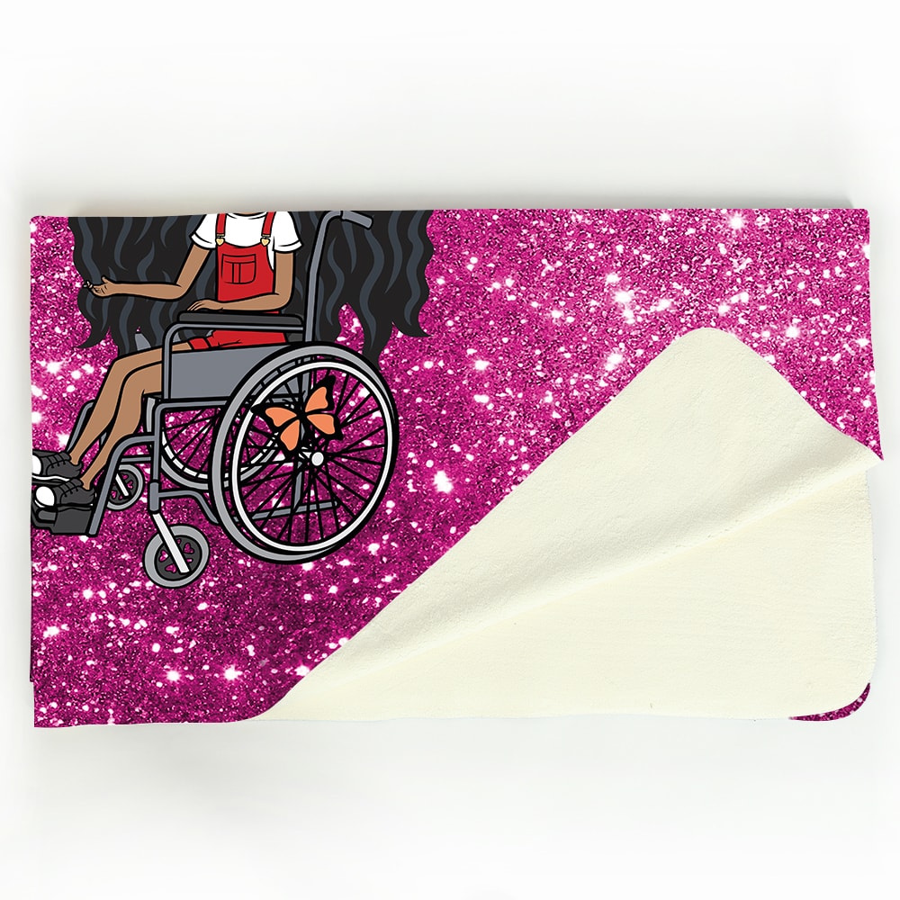 ClaireaBella Girls Pink Glitter Effect Wheelchair Fleece Blanket