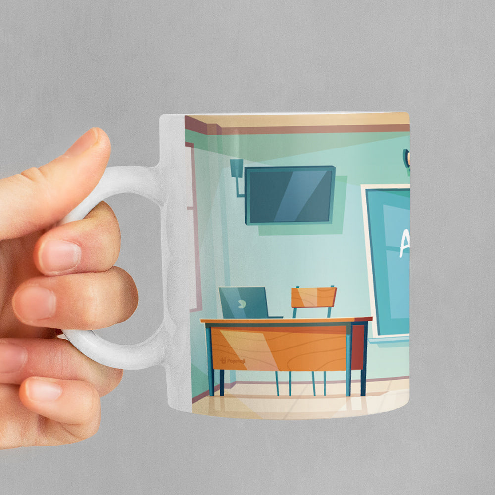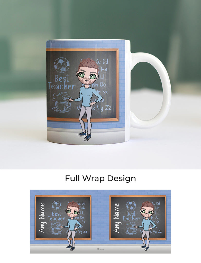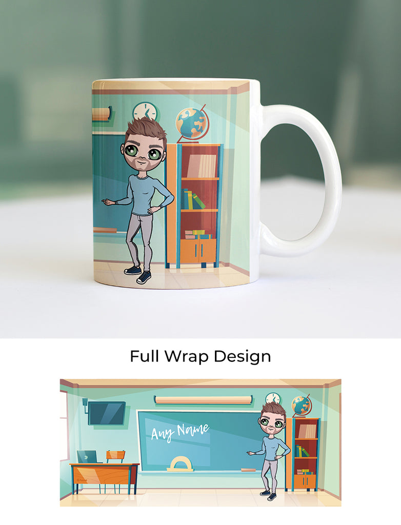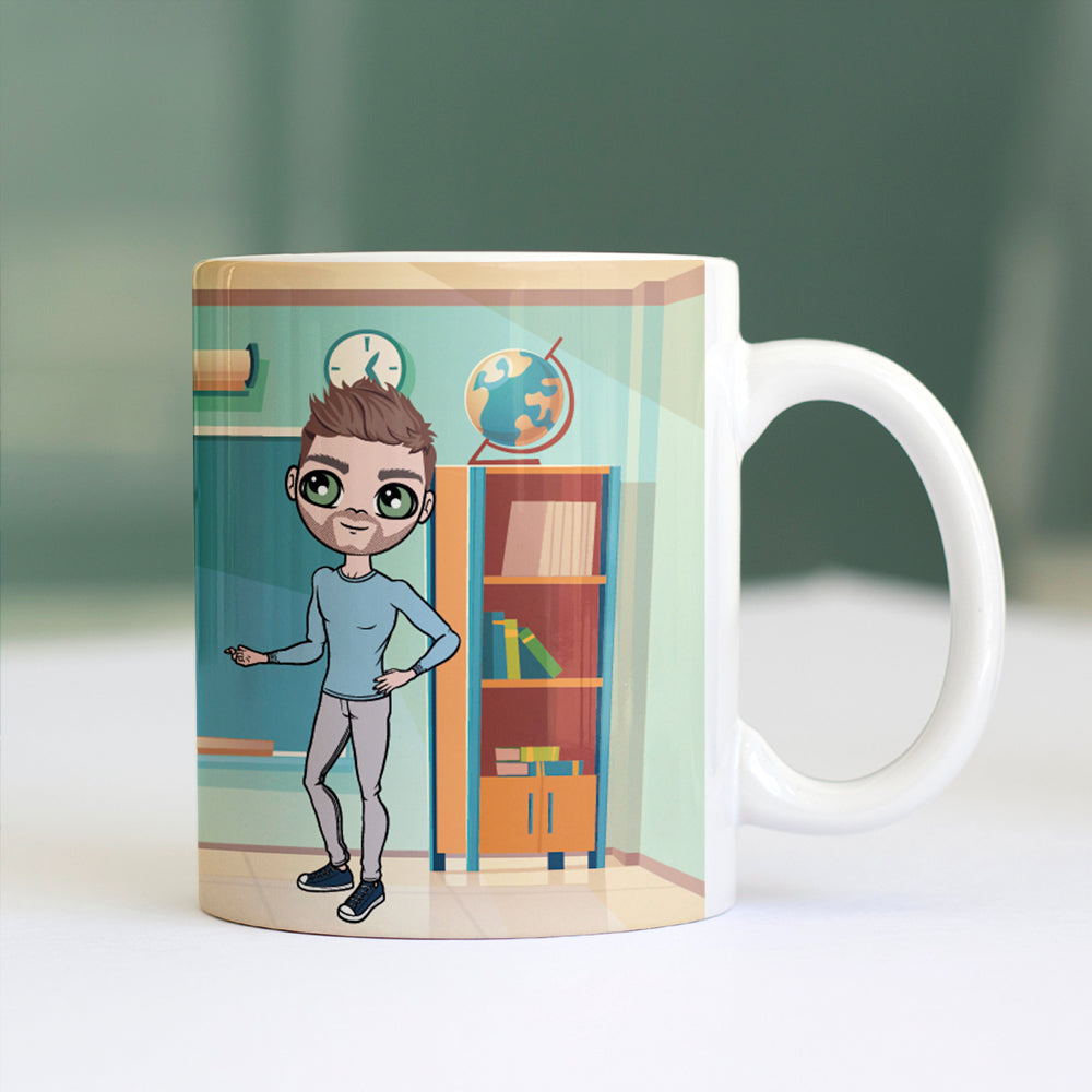 Hats of to the teachers and class room assistants show your appreciation and treat them to their very own personalised MrCB Class Room Mug. Personalised with your created character in the style of MrCB in a class room scene design.