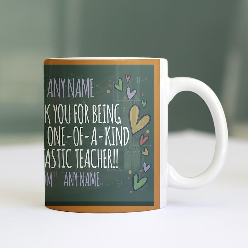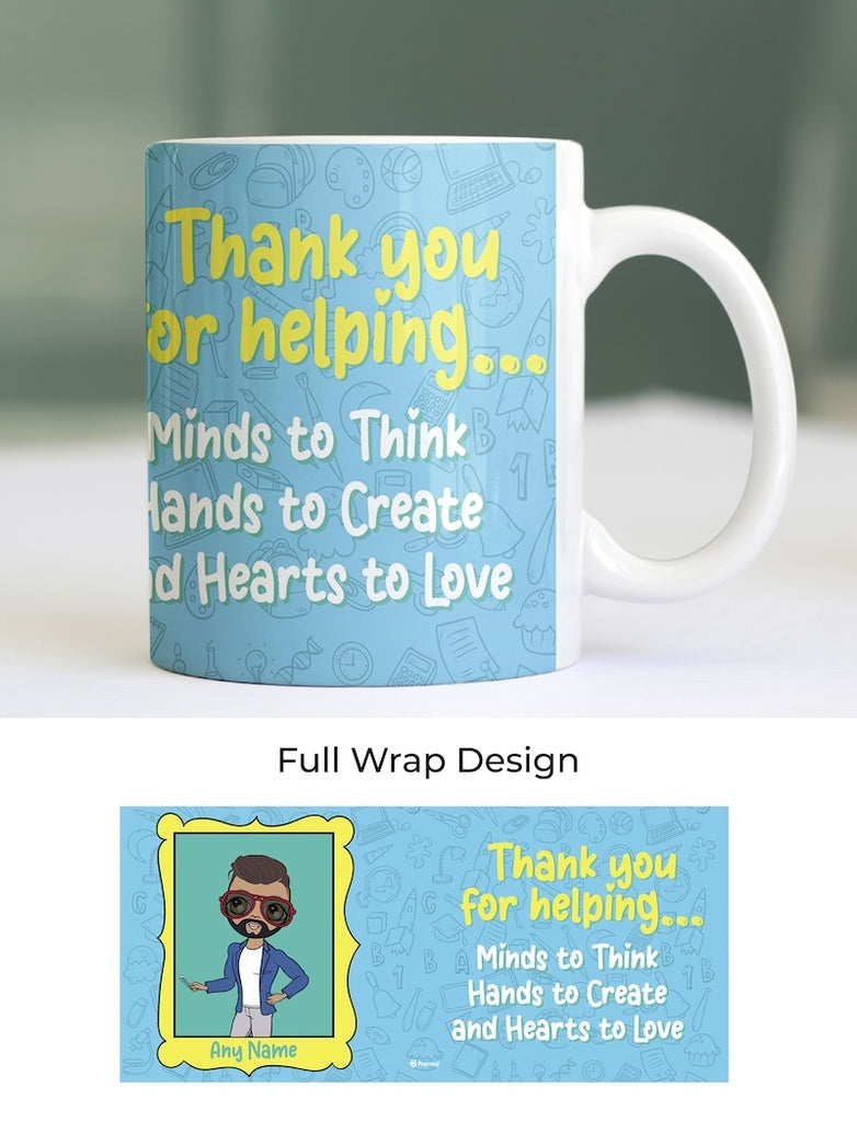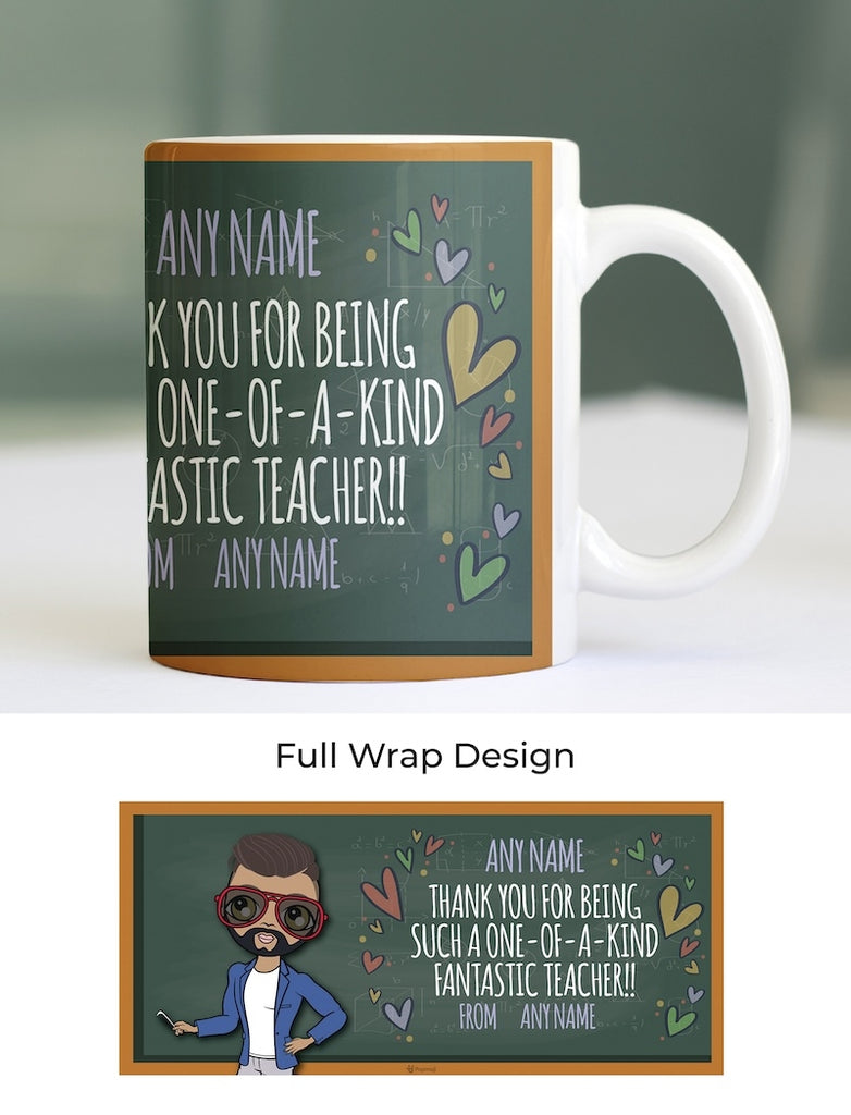 Add a large spoon of unique appreciation with a full mug of personality for your teacher!  Celebrate your uniqueness, with the fully personalised MrCB Mug, featuring your created character on a funky & fun background.