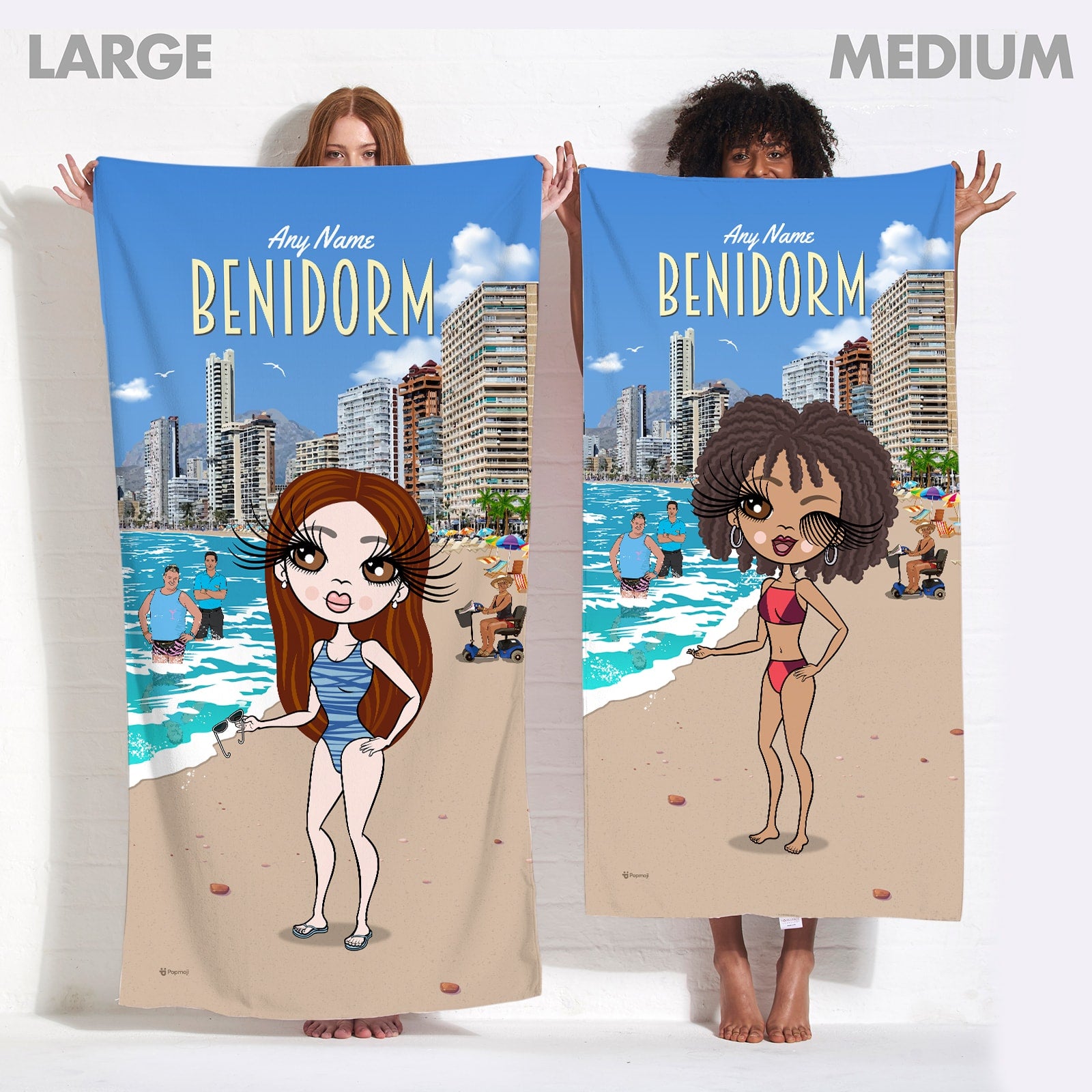 Beach Please! Up your game with the towel that holidays were made for, packing your holiday or break or even bathroom with the WOW factor . The personalised ClaireaBella beach towel features your created character in the style of ClaireaBella, on a fabulous design.