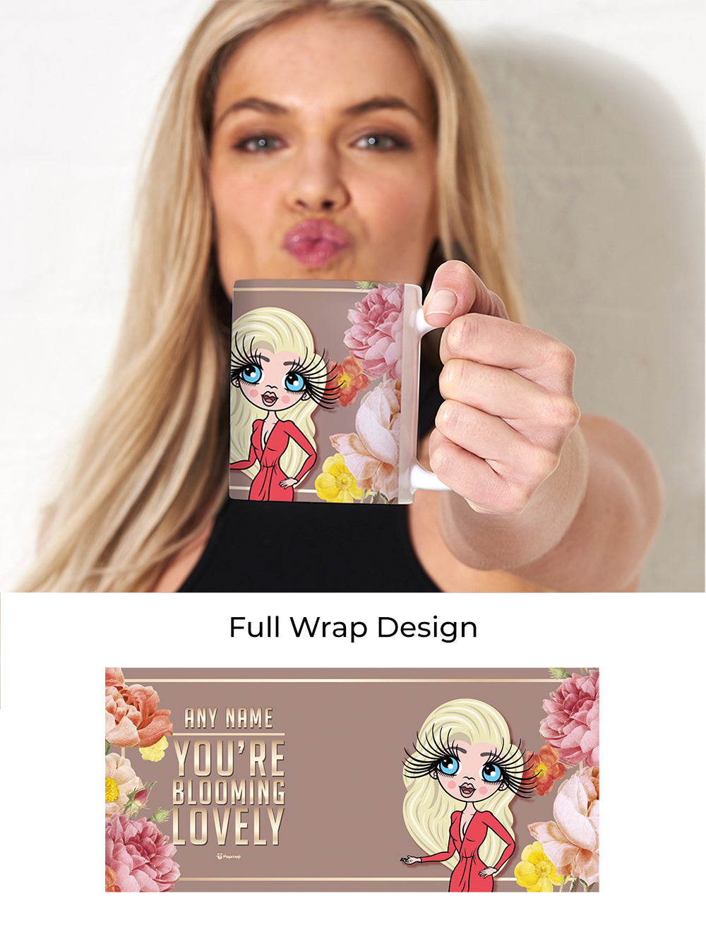 Treat mum to a nice cuppa by making it super sweet and personal, with the ClaireaBella Mug, featuring YOUR created character in the style of ClaireaBella at the centre of this sweet & fun-loving 'Blooming lovely' floral design.
