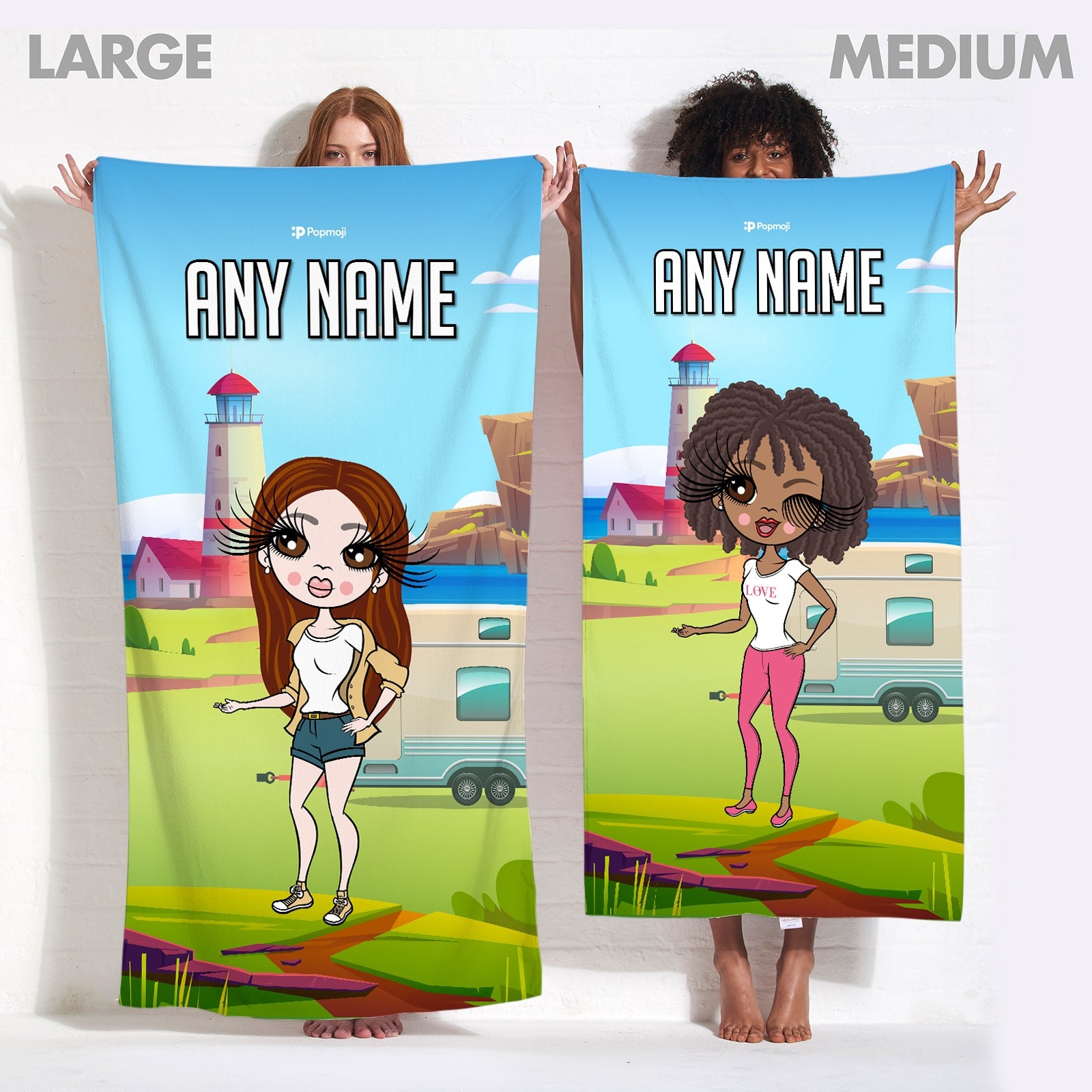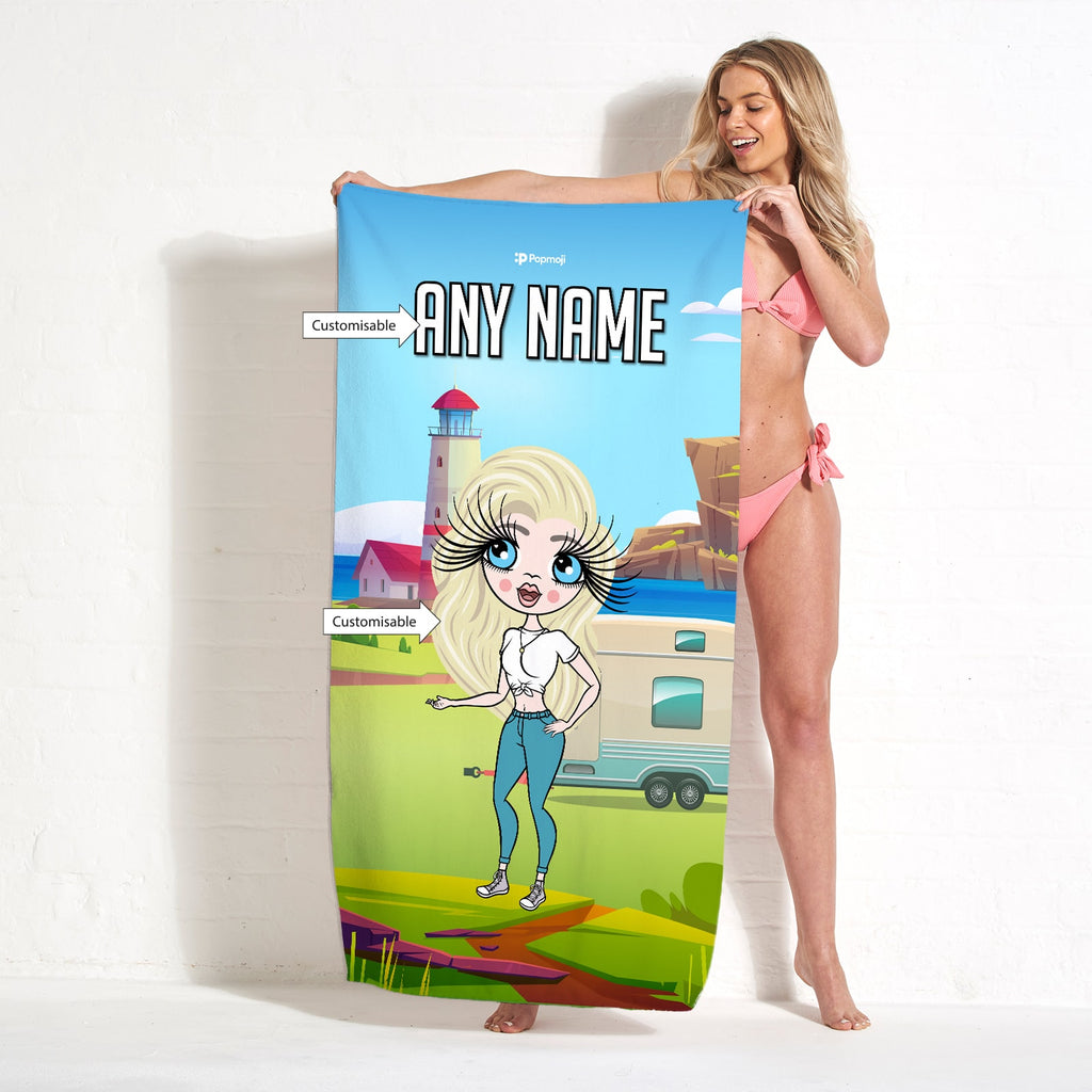 Let's celebrate and head off on a fun caravan trip in true ClaireaBella personal style, with your very own personalised ClaireaBella Beach Towel, featuring YOU in centre of a funky & fun caravan scene design.