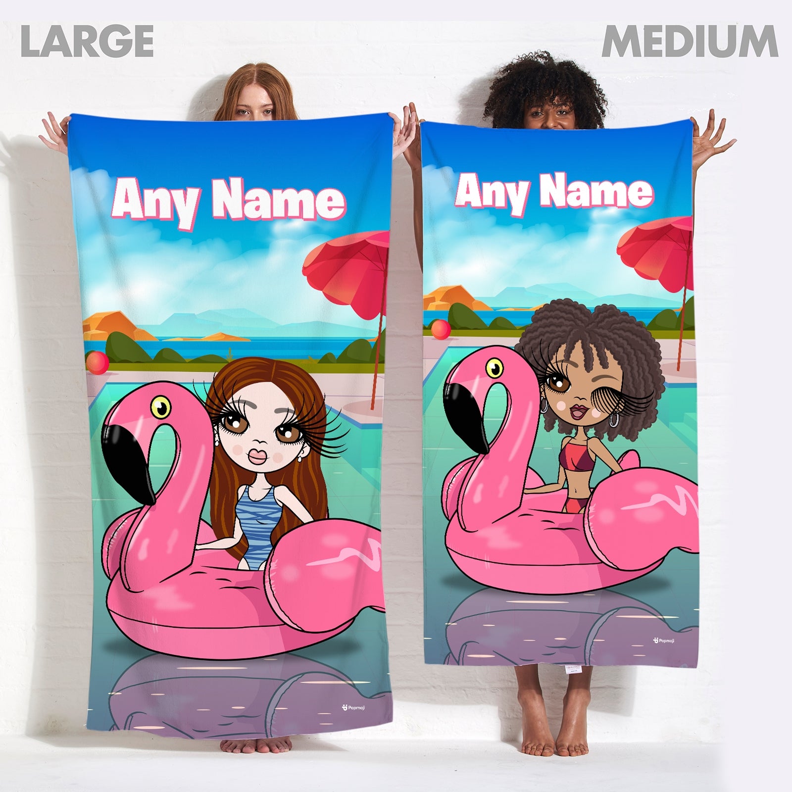 • Medium measures 70cm x 140cm • Large measures 80cm x 160cm • Rectangle beach towel • Made from 70% cotton and 30% microfibre • Design features on the microfibre top • White towel back • Create your character • Wash at 30 degrees • Towel will fluff up after the first wash
