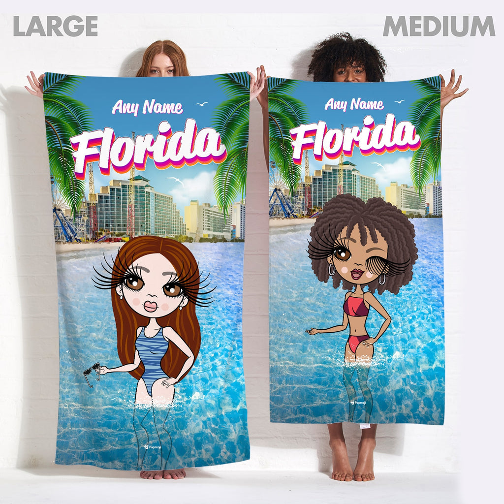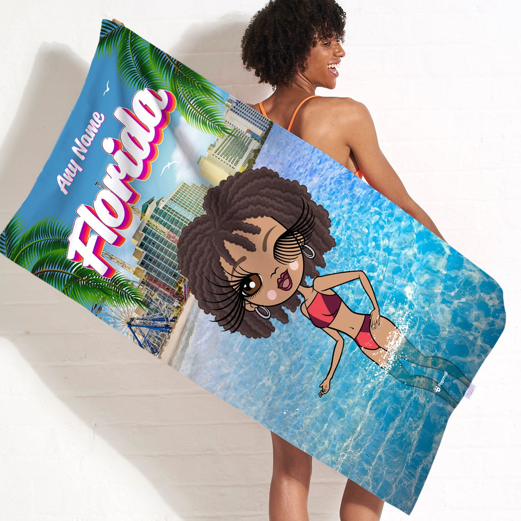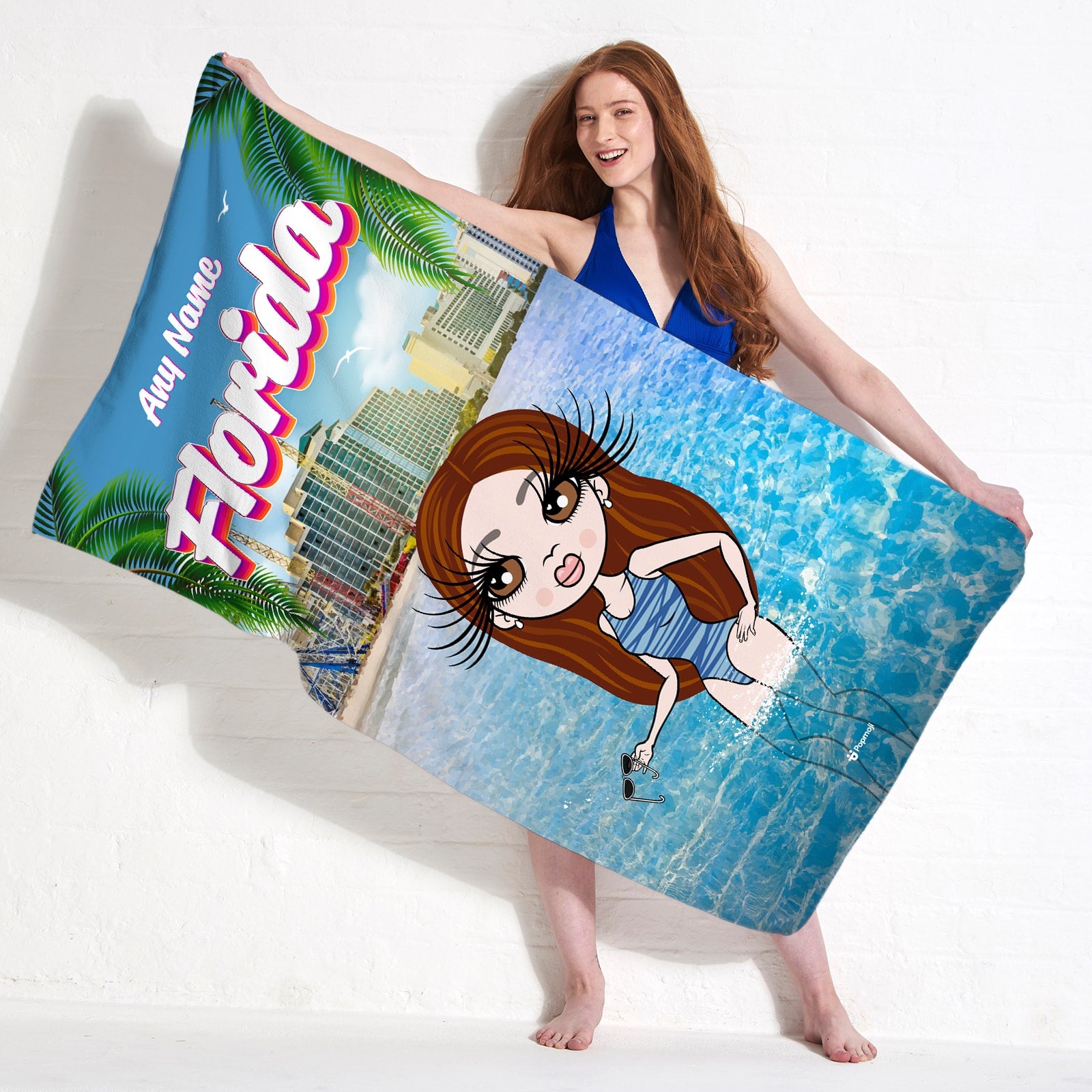 Beach Please! Up your game with the towel that holidays were made for, packing your holiday or break or even bathroom with the WOW factor . The personalised ClaireaBella beach towel features your created character in the style of ClaireaBella, on a fabulous design.