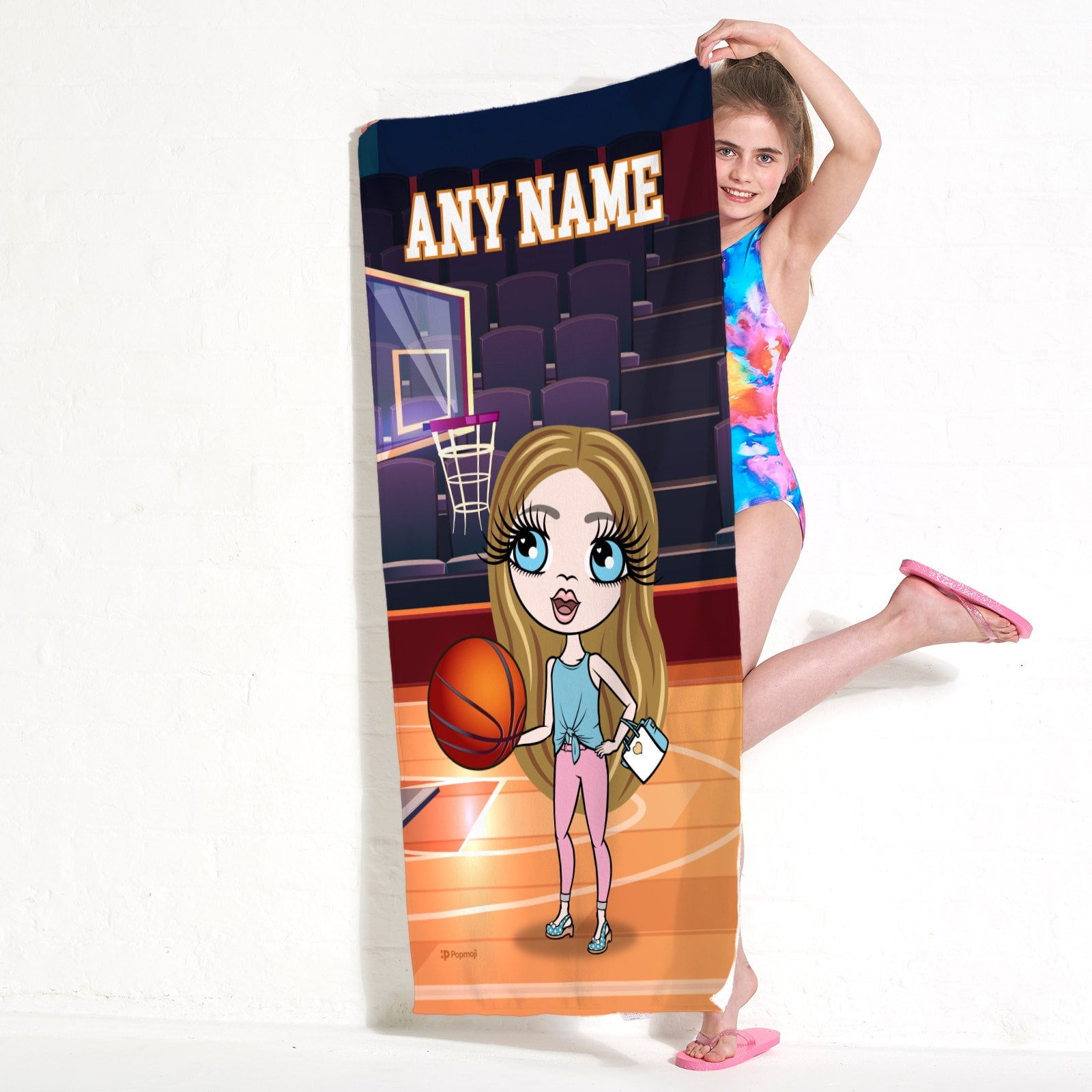 Head to the beach or pool in true sporting ClaireaBella Girls Style! - with your very own Personalised ClaireaBella Girls Beach Towel, with YOU at the centre of this fab basketball themed design.