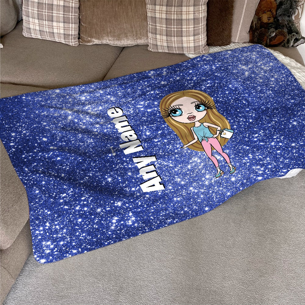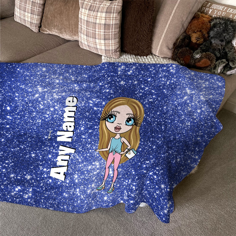 ClaireaBella Girls Blue Glitter Effect Fleece Blanket