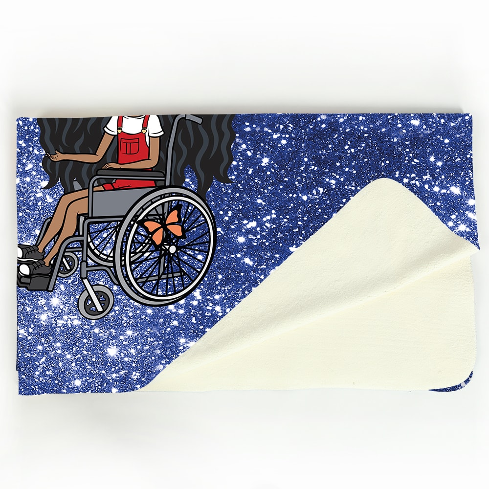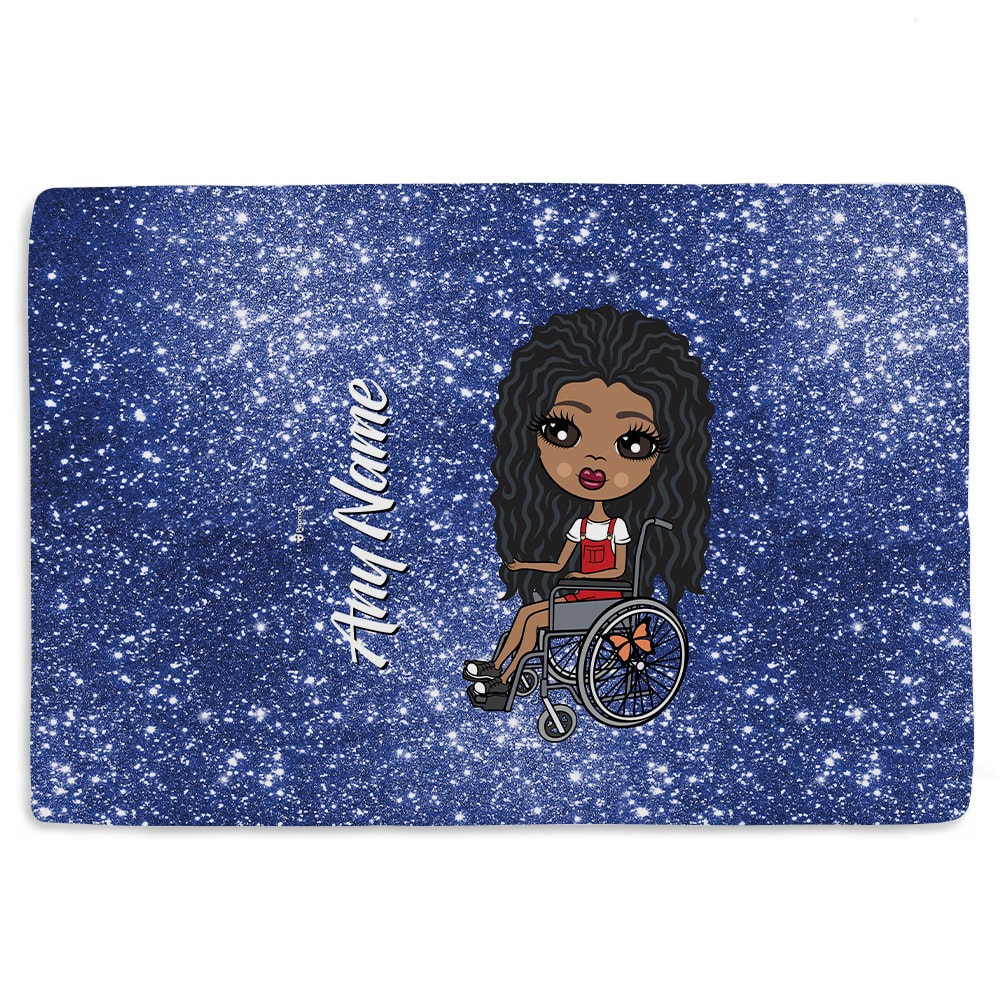 ClaireaBella Girls Blue Glitter Effect Wheelchair Fleece Blanket