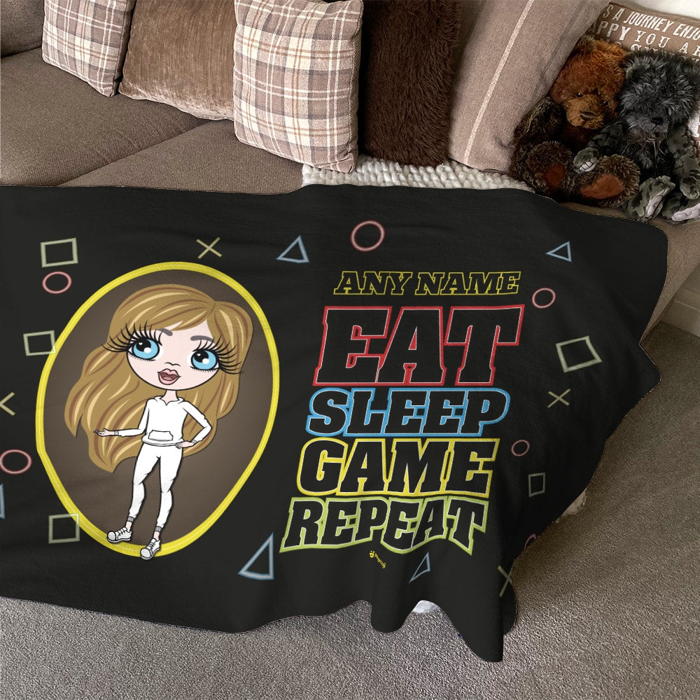 ClaireaBella Girls Eat Sleep Game Repeat Fleece Blanket