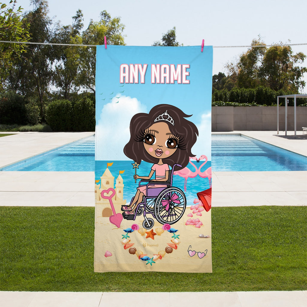 ClaireaBella Girls Flamingo Fun Wheelchair Beach Towel