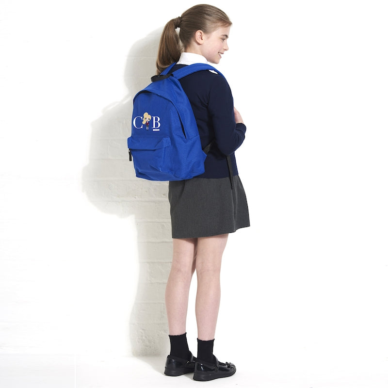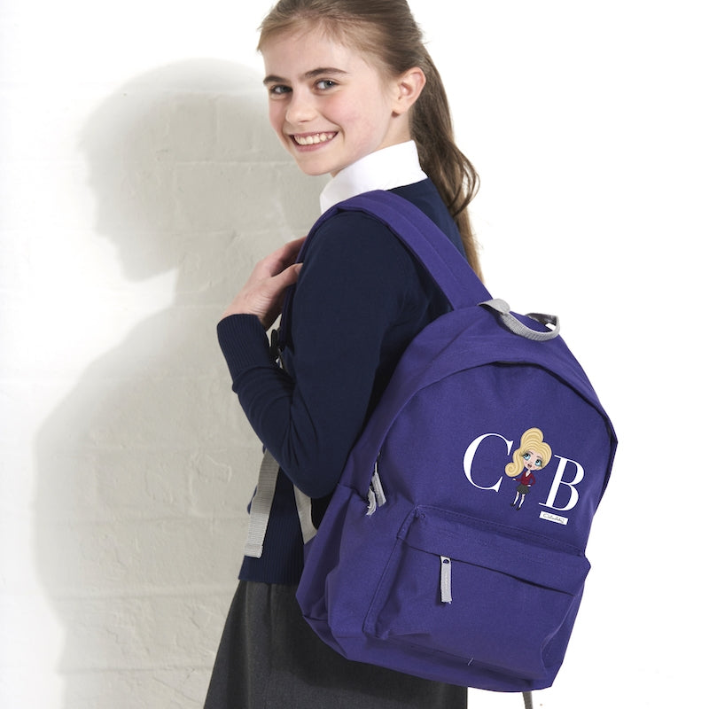 Head back to school in style, with the super fun & personal ClaireaBella Rucksack, featuring your created character and add initials to complete the design. This cute bag features padded adjustable shoulder straps along with a padded back panel for carrying comfort, a zippered front pocket to keep their little treasures safe and it alsocomes in a variety of colours to choose from. Avoid those school bag mix ups!