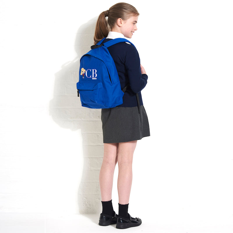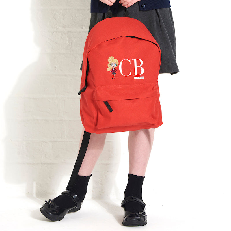Head back to school in style, with the super fun & personal ClaireaBella Rucksack, featuring your created character and add initials to complete the design. This cute bag features padded adjustable shoulder straps along with a padded back panel for carrying comfort, a zippered front pocket to keep their little treasures safe and it alsocomes in a variety of colours to choose from. Avoid those school bag mix ups!