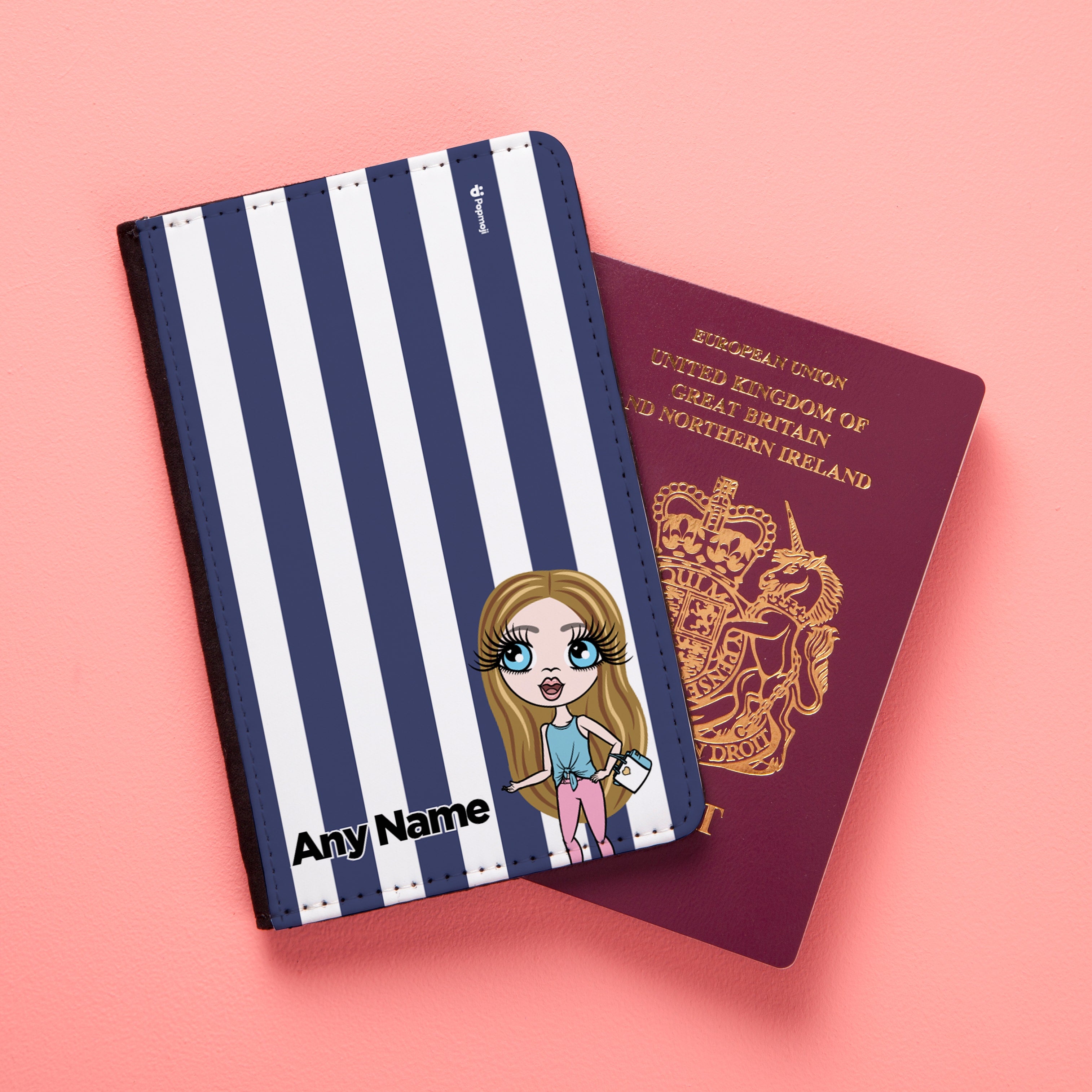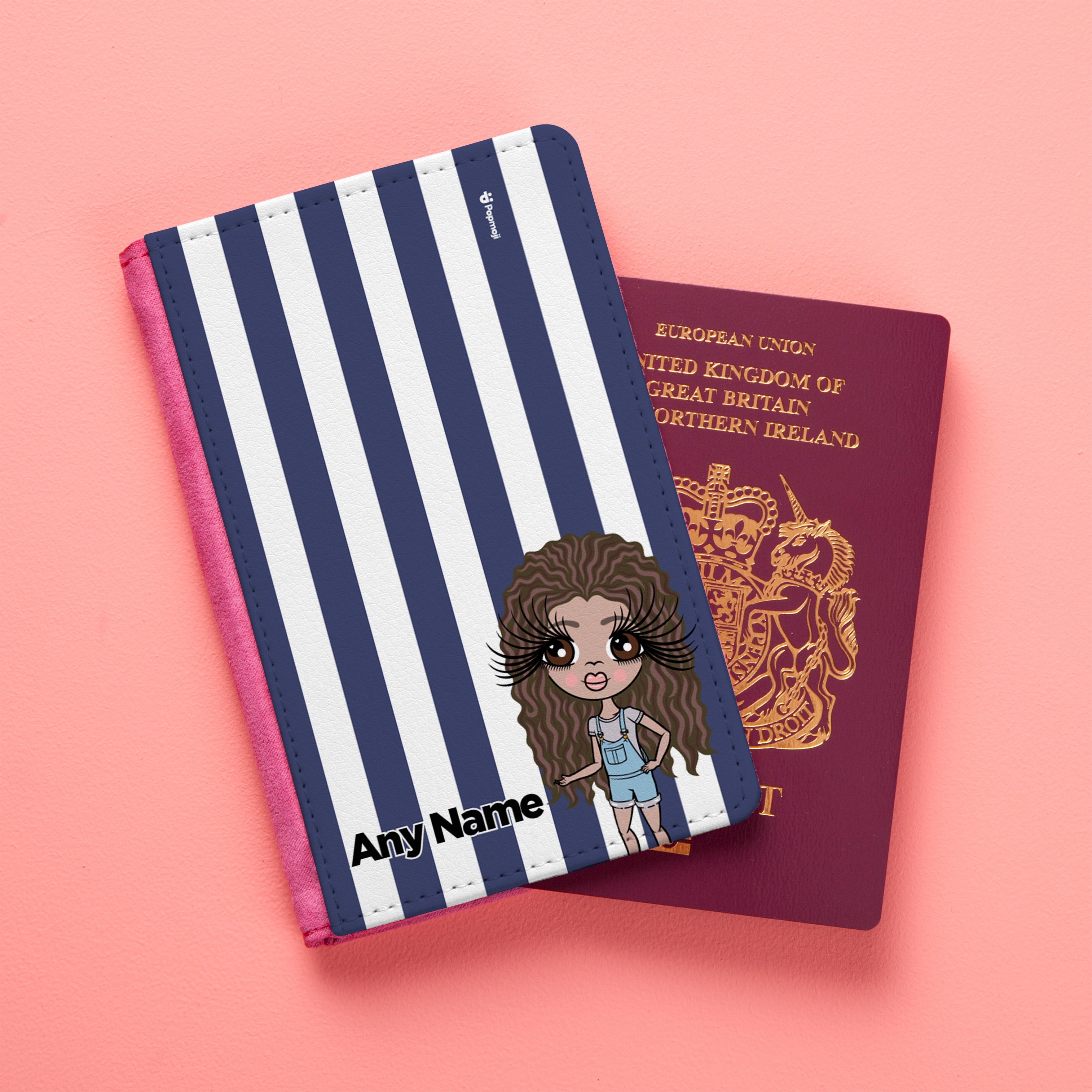 ClaireaBella Girls Personalised Navy Stripe Passport Cover