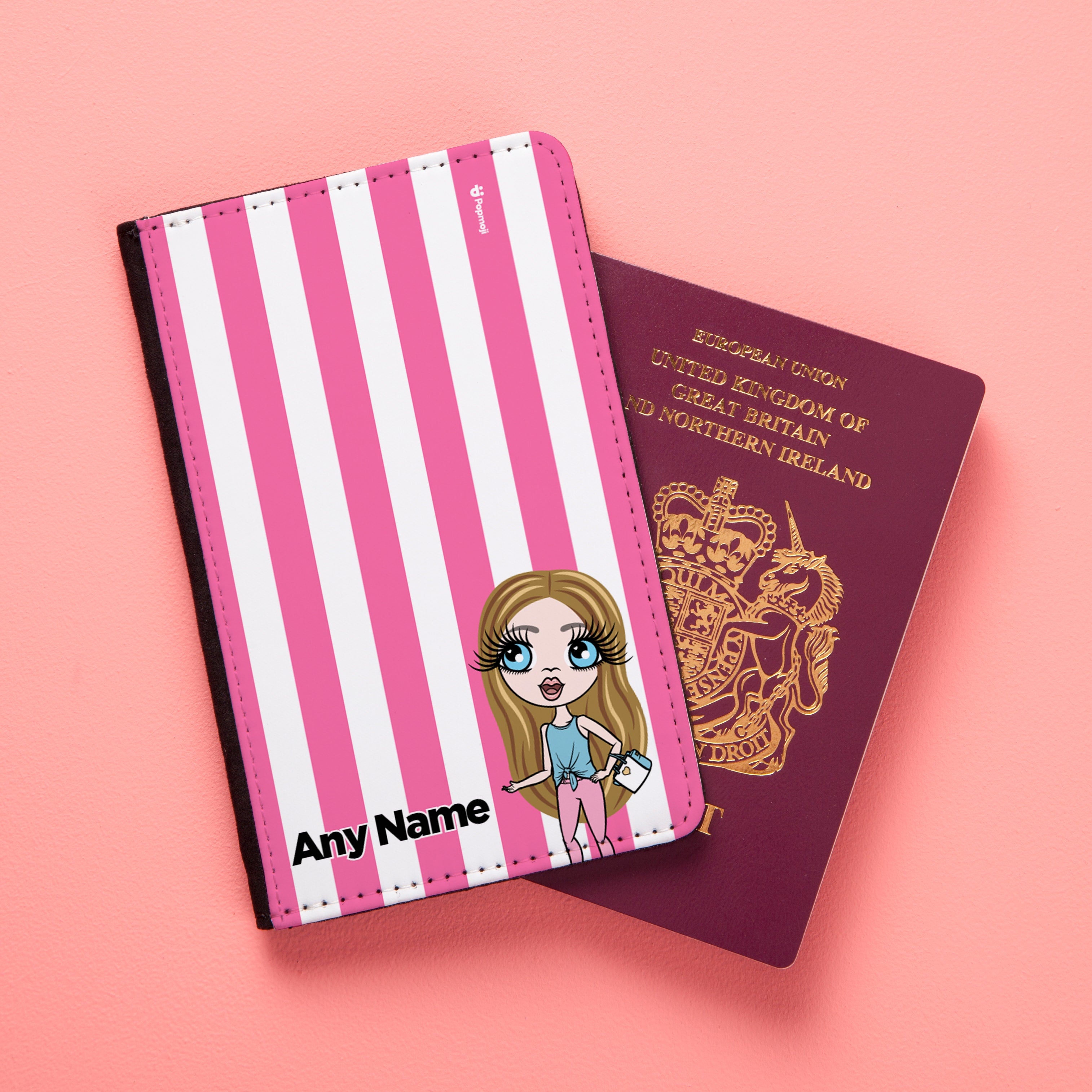 ClaireaBella Girls Personalised Pink Stripe Passport Cover